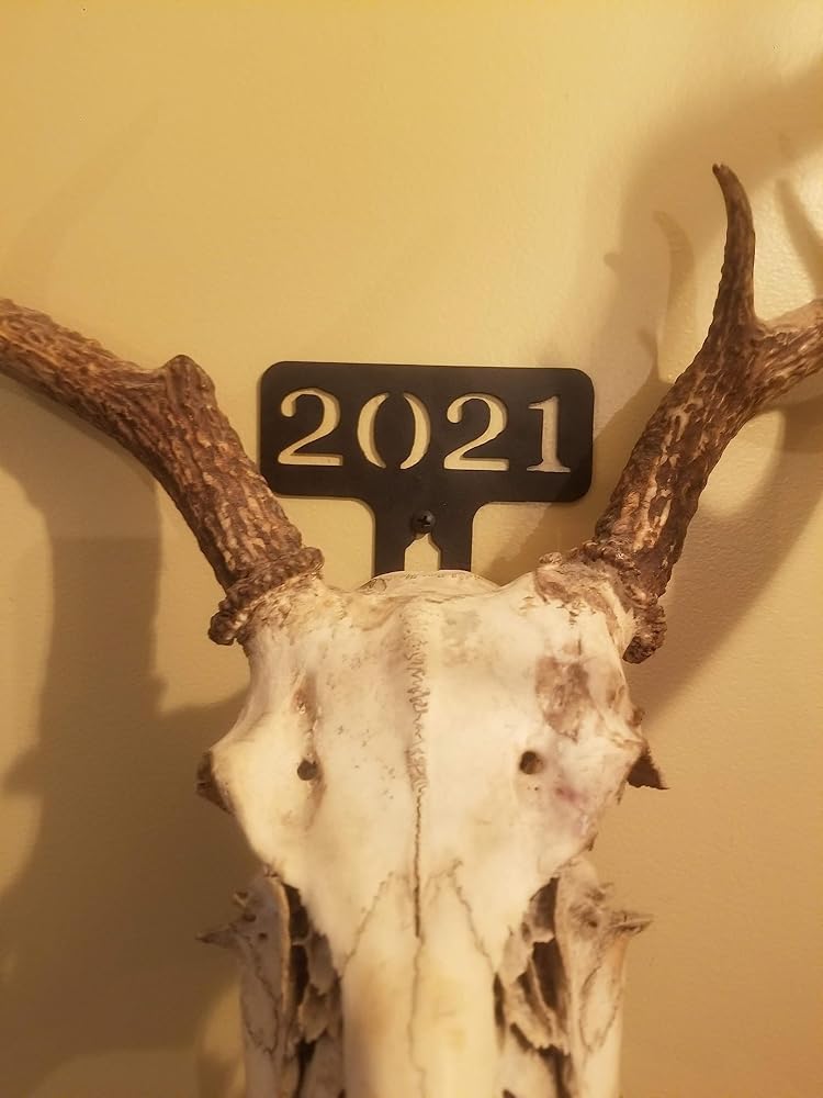 2023 2022 Year Metal European Mount Deer Skull Hanger Bracket Hook You pick the year to match the year of your successful hunt! CNC Laser cut 14 Gauge Steel, and powder coated matte black here in the USA. This listing is for 1 Skull Hanger of your choosing with two matching black screws for mounting. Your installation may require wall anchors which are not included. Shipped flat, bend for your desired angle. Skull not included