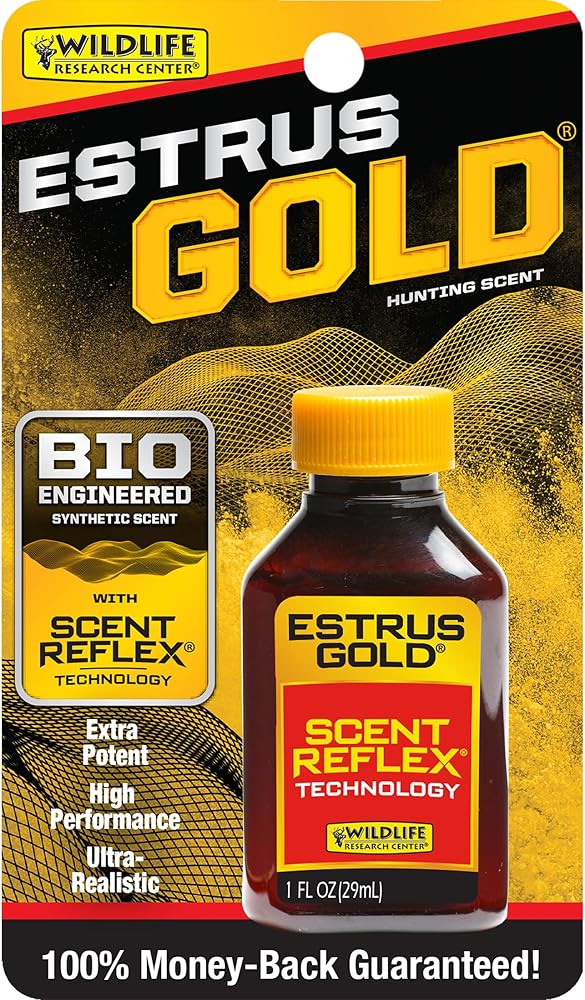 Estrus gold super premium synthetic doe Estrus scent. Engineered to smell like fresh high quality doe Estrus urine. Super Charged with scent Reflex technology for, stronger more consistent responses.