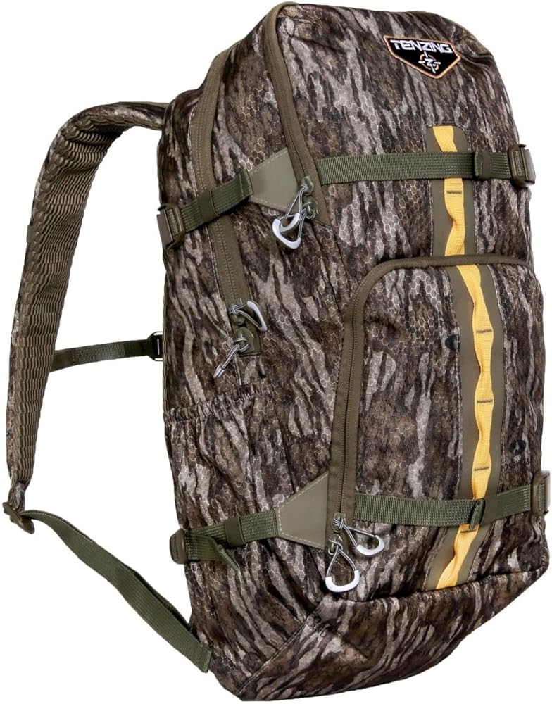 The Tenzing 1200 Bag boasts a burr-proof, 300-denier ripstop Honeycomb Poly Oxford outer shell outfitted in NEW Mossy Oak Bottomland camo, allowing it to blend perfectly into the hardwoods. Inside the 1,200-cubic-inch main compartment you'll find ample storage space, including five open-top grab pockets, two zippered pockets and fold-down gear organizer. Plus, it features two exterior zippered pockets, two expandable side pockets with adjustable compression straps and trademarked Daisy Chain customization for attaching additional gear.