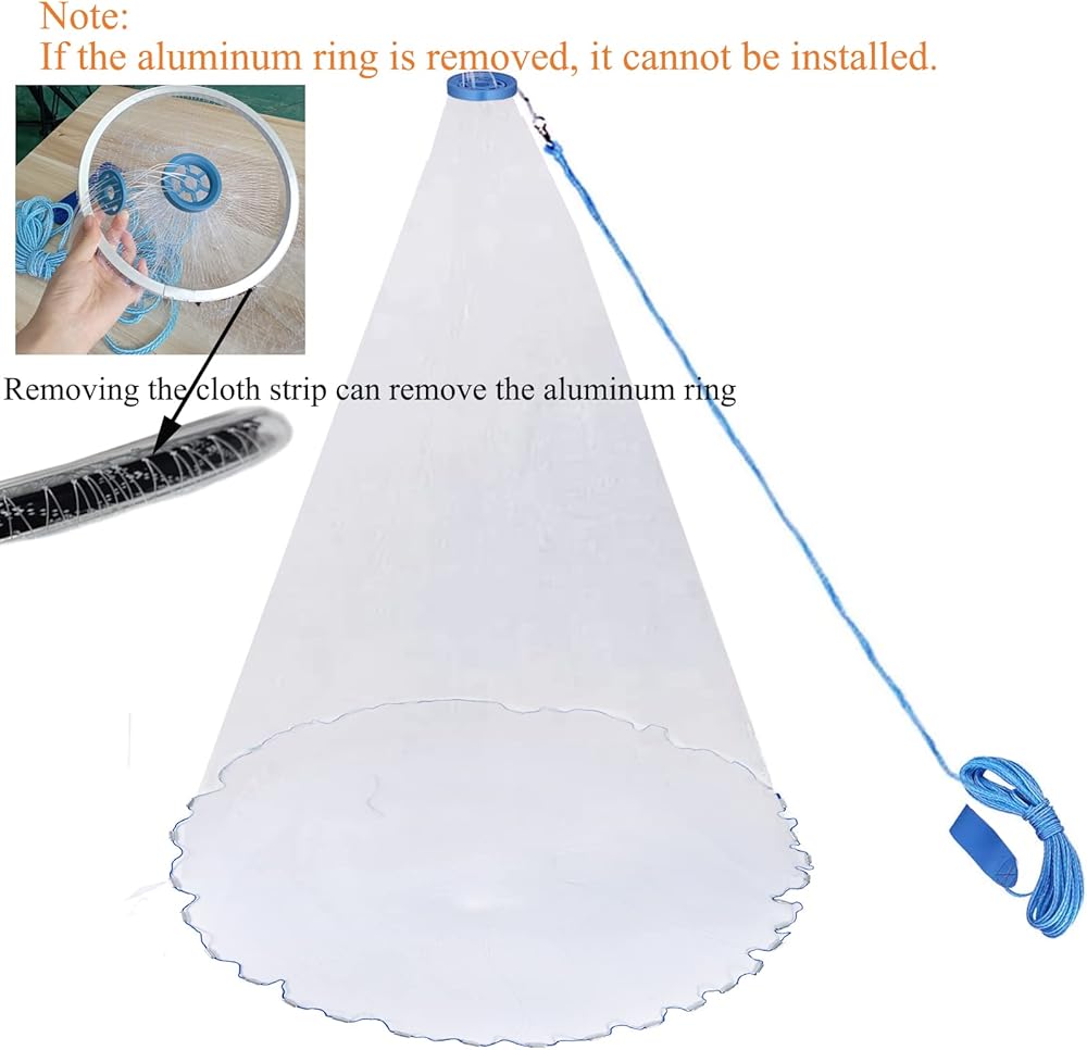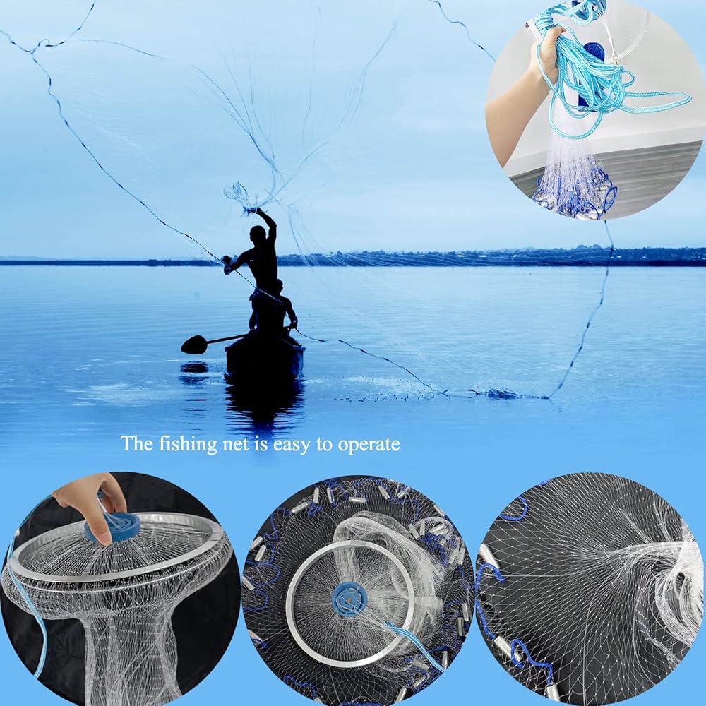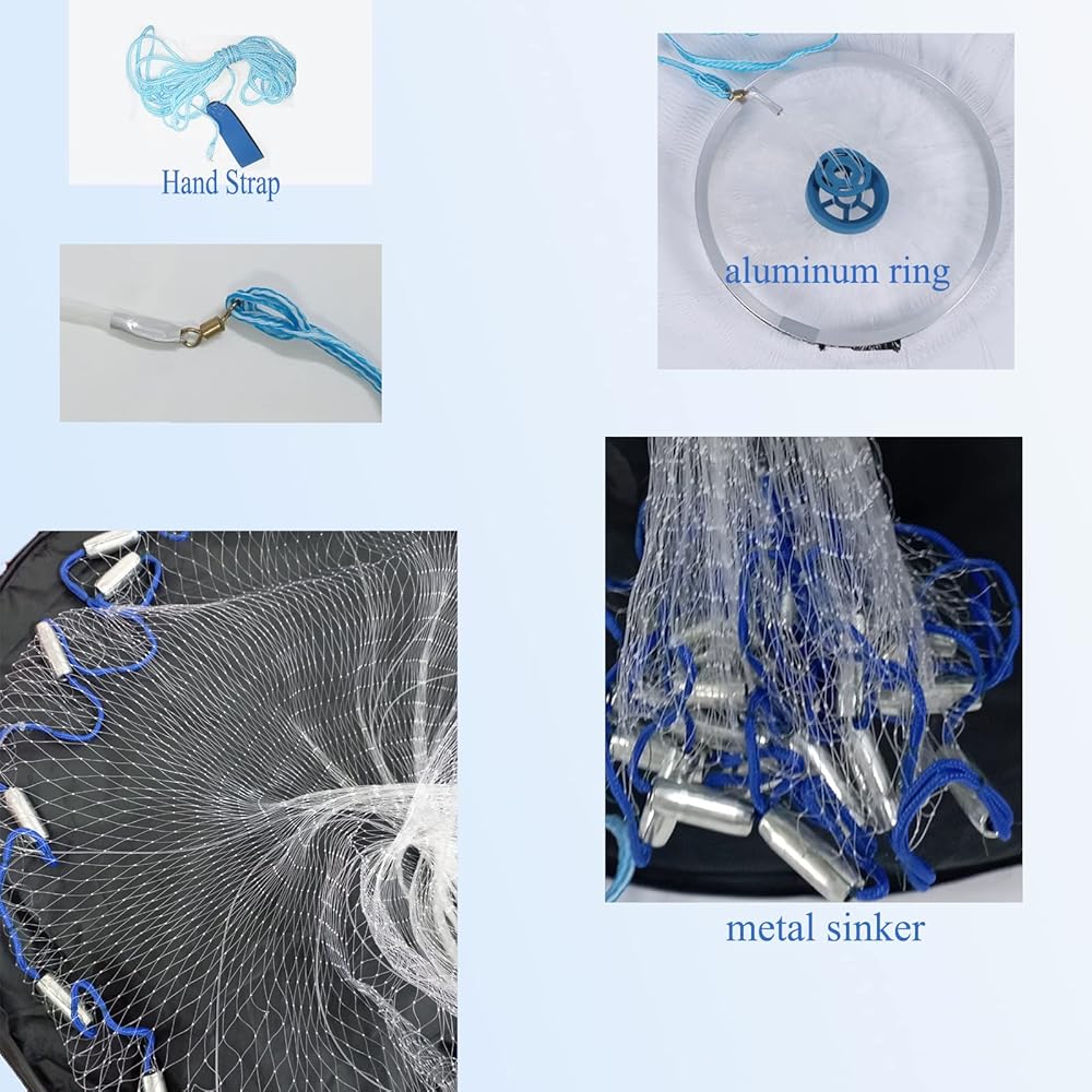 ✅【Easy to Operate】 Our cast net for fishing bring more fun and convenience to fishing and are easy to throw. There is no need for any assembly and other procedures, just put the tail of the handle rope on your hand and throw the net out with force.