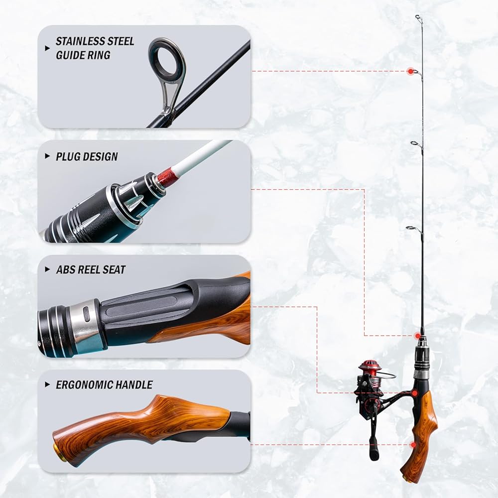 ❄️【خفيفة الوزن وقابلة للحمل】: يمكن وضعها بسهولة في حقيبة السيارة أو القارب أو حقيبة الظهر. تسمح لك بكرة الغزل القابلة للطي والقضيب القابل للفصل بالتوجه إلى مكان الصيد الجليدي المفضل لديك للاستمتاع بالصيد في الهواء الطلق في أي وقت وفي أي مكان.