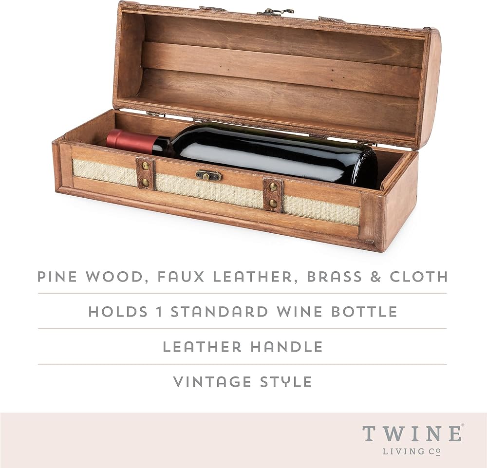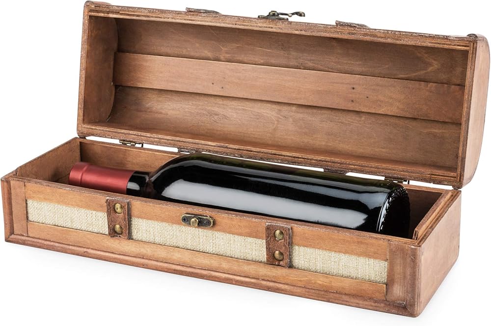 UPGRADE YOUR WINE BOTTLE GIFTING - This vintage trunk style wooden wine box elevates the usual gift bottle experience beyond the basic wine bag. Also works as a great storage solution in your home, keeping bottles away from light.4.75 x 13 x 4.75 inches.