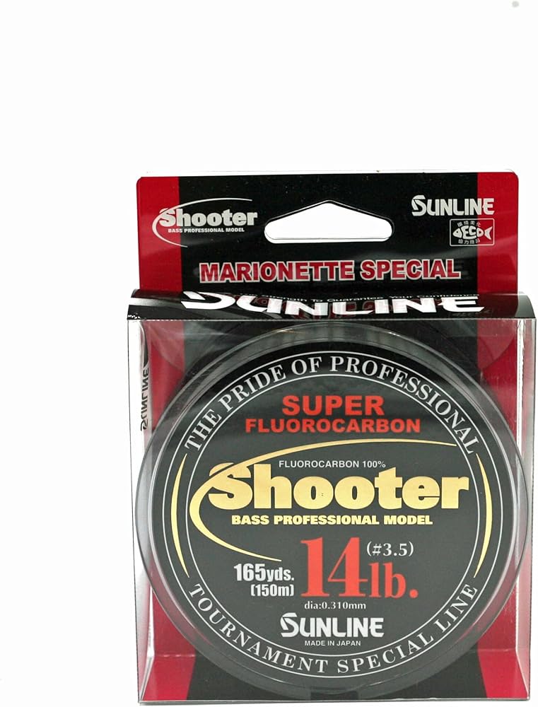 Sunline has introduced a new version of the top line Shooter product. Sunline's goal with making the new version was to create a line that could be used in all applications and was now available in more sizes. It is difficult to make one product exactly the same across a wide range of sizes and have it be effective for all of those, so Sunline now has three versions of Shooter. Shooter Fluorocarbon features include the following: Sunline's highest quality fluorocarbon-Best fc product for flipping or when maximum abrasion resistance is needed-Highest abrasion resistance-Highest sensitivity-Designed for heavy cover applications-Lowest stretch. Stiffer than FC Sniper-Parallel spooling to insure the lowest memory. Triple resin processing.