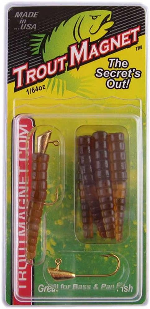 Trout magnet - brown the unique 1/64 oz shad dart head and split tail grub allow the lure to fall horizontally rather than vertically. A trout's entire food source flows downstream with the current. This is why most jigs do not work for trout. The trout magnet, on the other hand, flow naturally with the stream. This horizontal falling action also makes it deadly for other species of fish. Weighted hooks/jig heads Leland lures brown. There's nothing like the fishing sport to calm your frazzled nerves or relax on a nice spring day.