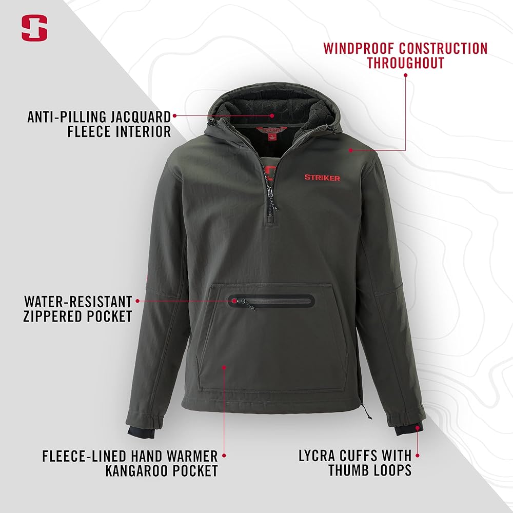 HIGH-QUALITY OUTDOOR GEAR: Striker is known for building premium, purpose-built outdoor gear for extreme cold-weather activities like ice fishing, open-water fishing, hunting, snowmobiling, and more. Pair this pullover with any Striker bib, and enjoy ultimate comfort in any outdoor situation.