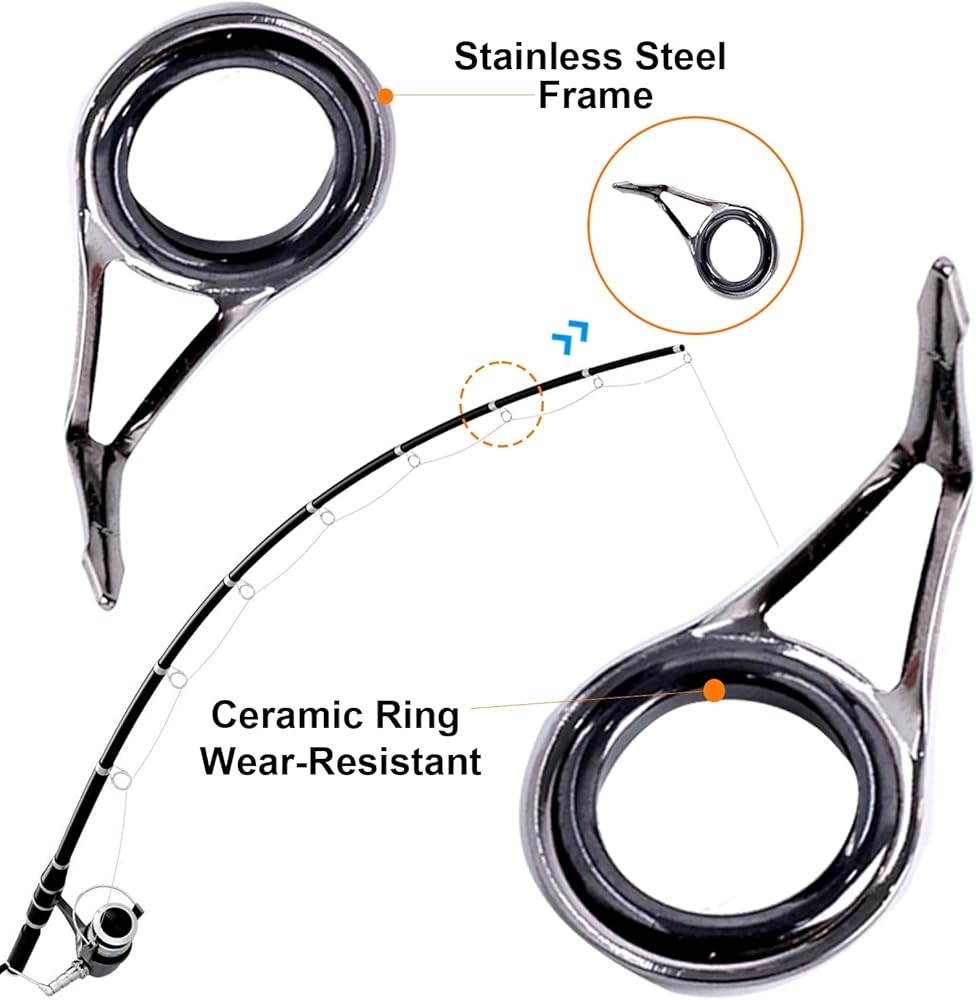 [Premium Guide Ring Kit] Zsrivk guide ring consists of high quality stainless steel frame with ceramics ring. The ceramics ring is so smooth that the fishing line won't be cut, and the frame is durable and anti-rust, which reduce the possibility of fish escaping.