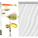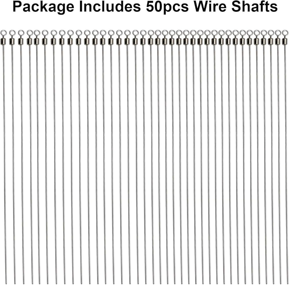 NEW DESIGN SWIVLE WIRE SHAFT: New design wire shaft with the 360 degree Rotating Swivel, which makes it more easy and convenient to make buzzbait, spinner bait and Fishing Spinner. Roller swivels keep your line from twisting. ATTENTION: The Package Just INCLUDES 50pcs Wire Shaft, other fishing tackle for reference and instruction.