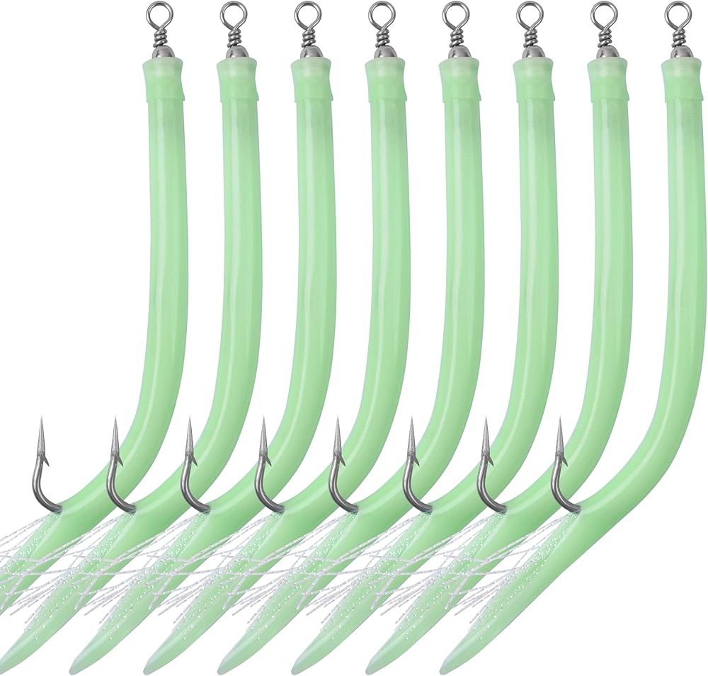 FLEXIBLE DESIGN:Fishing trolling tube rigged with stainless steel saltwater hooks,barrel swivels and flashing teaser which adds an added color splash to entice fish strikes.Ideal for casting, trolling or bottom fishing