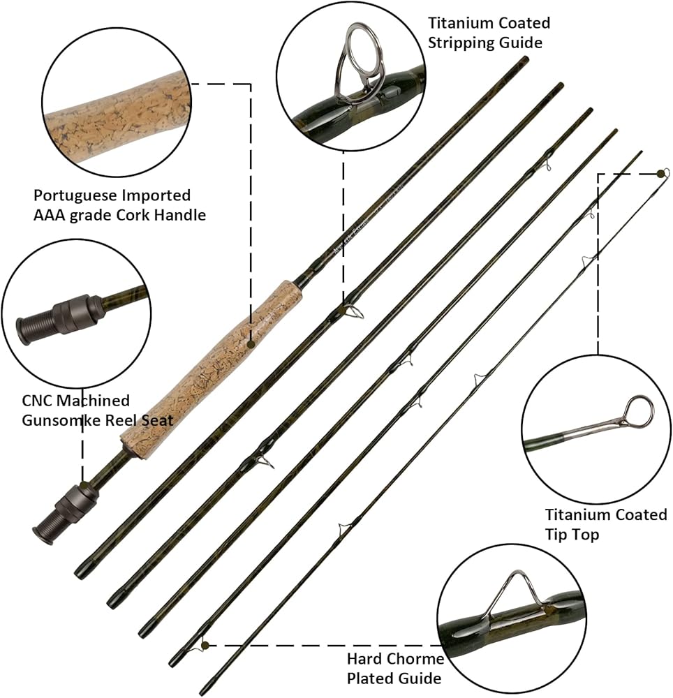 BEST SELECTED COMPOENTS: Chinese home-made titanium coated tip tops, snake feet guides, Chinese home-made stripping guides for the best performance in all conditions. Smooth casting, minimum friction, and corrosion resistant. CNC machined gunsomke reel seat. composite cork handle. Quality cotton rod cloth and cordura rod tube.