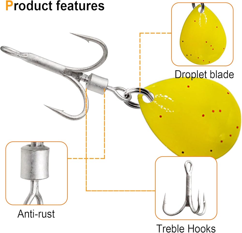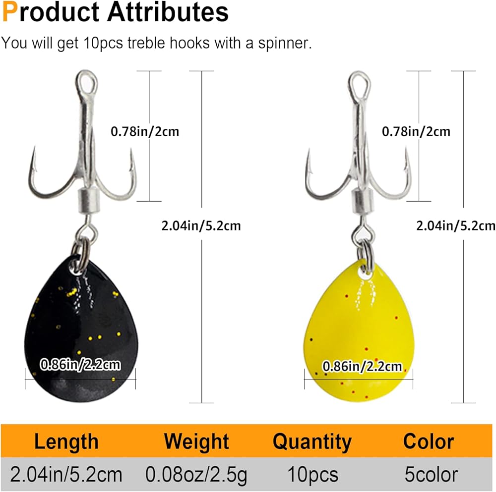 Efficient Replacement Hook: The bladed treble hooks can be used as a replacement hook. You can chang any bait by using a treble hooks or spinners blade.