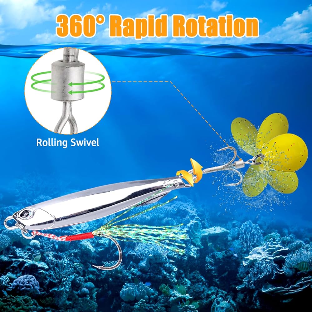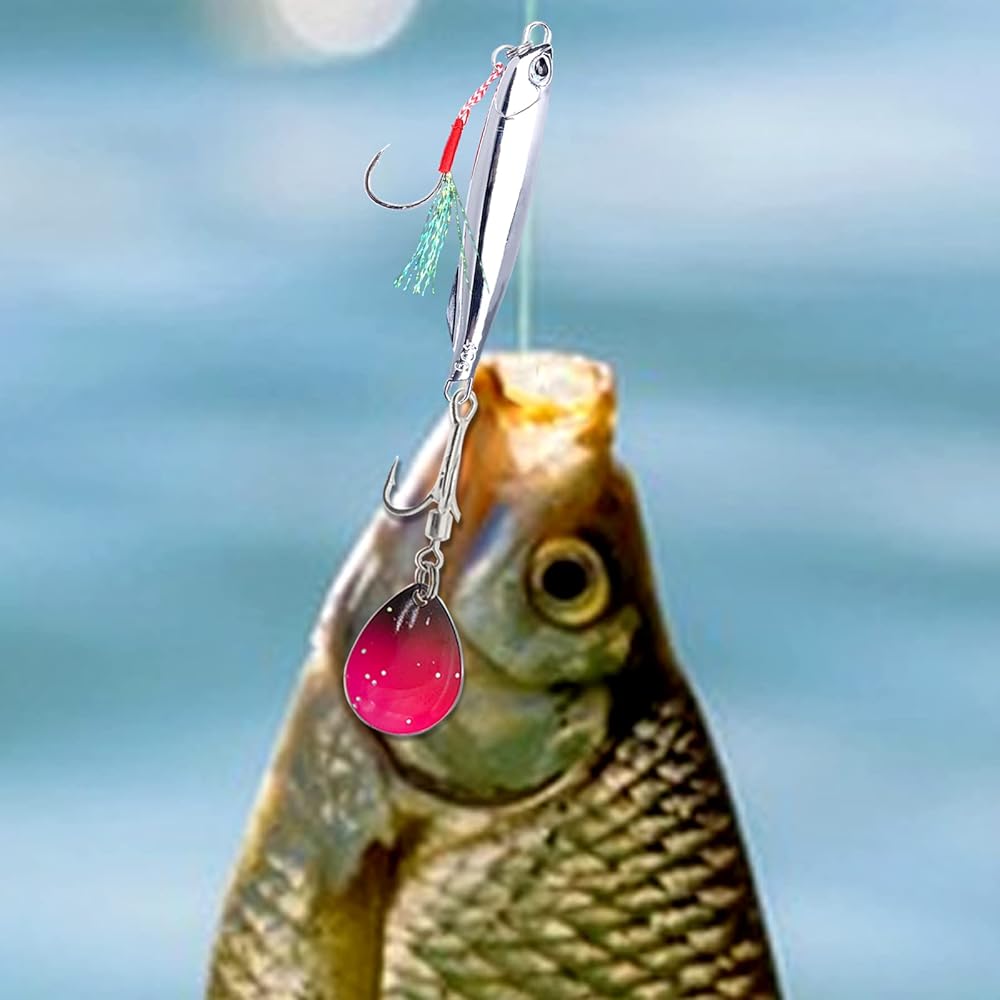 Spinner Blade Hook: The spinner blade has less water resistance than other blades, can dive into the water quickly, move faster through the water and spin faster. With 360° freely rotatable,the spinner blade hook adds more sparkles and vibration that attract fish to bait fishing lures. You'll enjoy fishing even more.