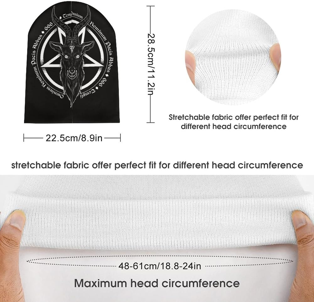Carefully crafted from premium stretchable fabric, this beanie ensures a snug fit for head circumferences ranging from 18.8 to 24 inches. It's specifically designed to accommodate men and women who embrace their unique fashion sense and are drawn to satanic symbolism, gothic aesthetics, and goth clothes.