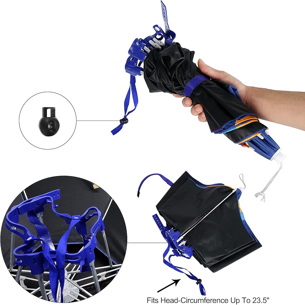 MORE COMFORT - Made of 7 fibrous umbrella bones is stronger and lighter to fit comfortably and snugly on your head. 35'' umbrella cap is the right size to stay in place and turn your head, just free hands to do something else