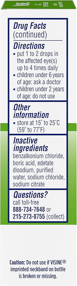 0.5-fluid ounce bottle of Visine A.C. Itchy Eye Relief Astringent Eye Drops with zinc sulfate and tetrahydrozoline HCl to help provide temporary relief from itchy, red, watery eyes