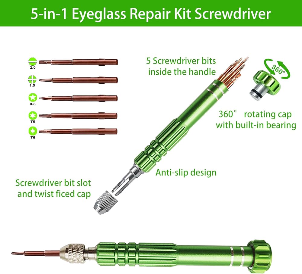Durable and Reliable: Made with high-quality materials,the Eyeglass Repair Kit Screwdriver is built to last. It is designed to withstand regular useand provide long-lasting performance,enabling precise repairs.