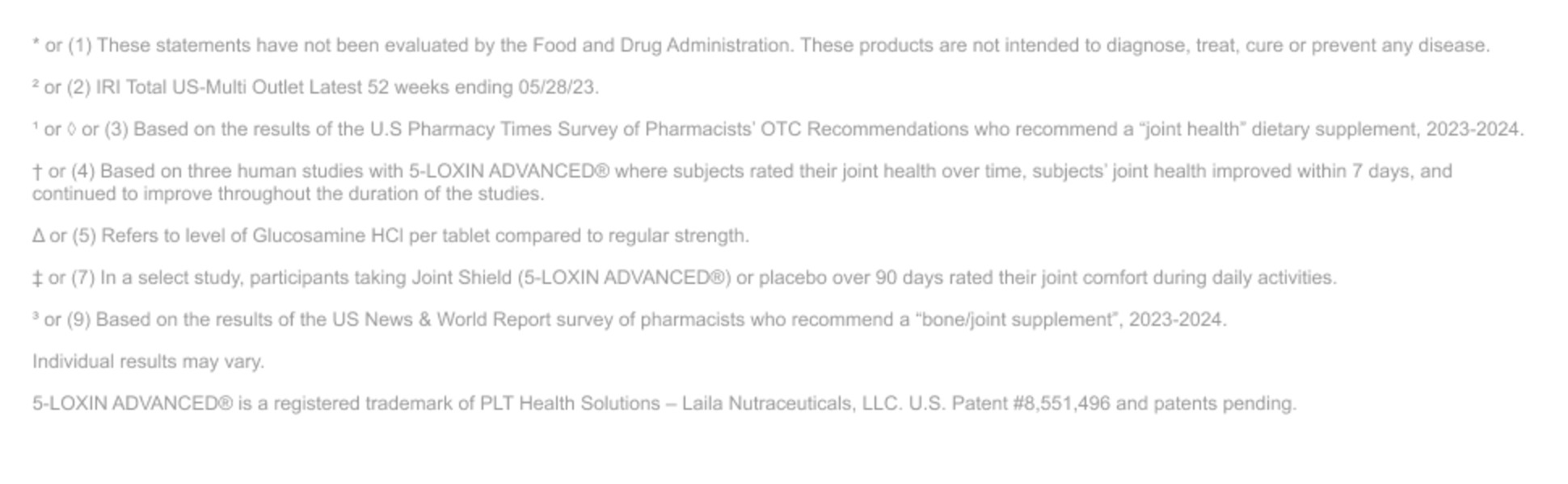 Joint Shield 5-LOXIN Advanced is a clinically studied herbal extract that has been shown to improve joint comfort in 7 days(4)(1)
