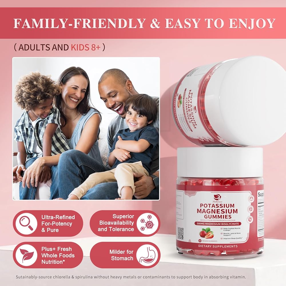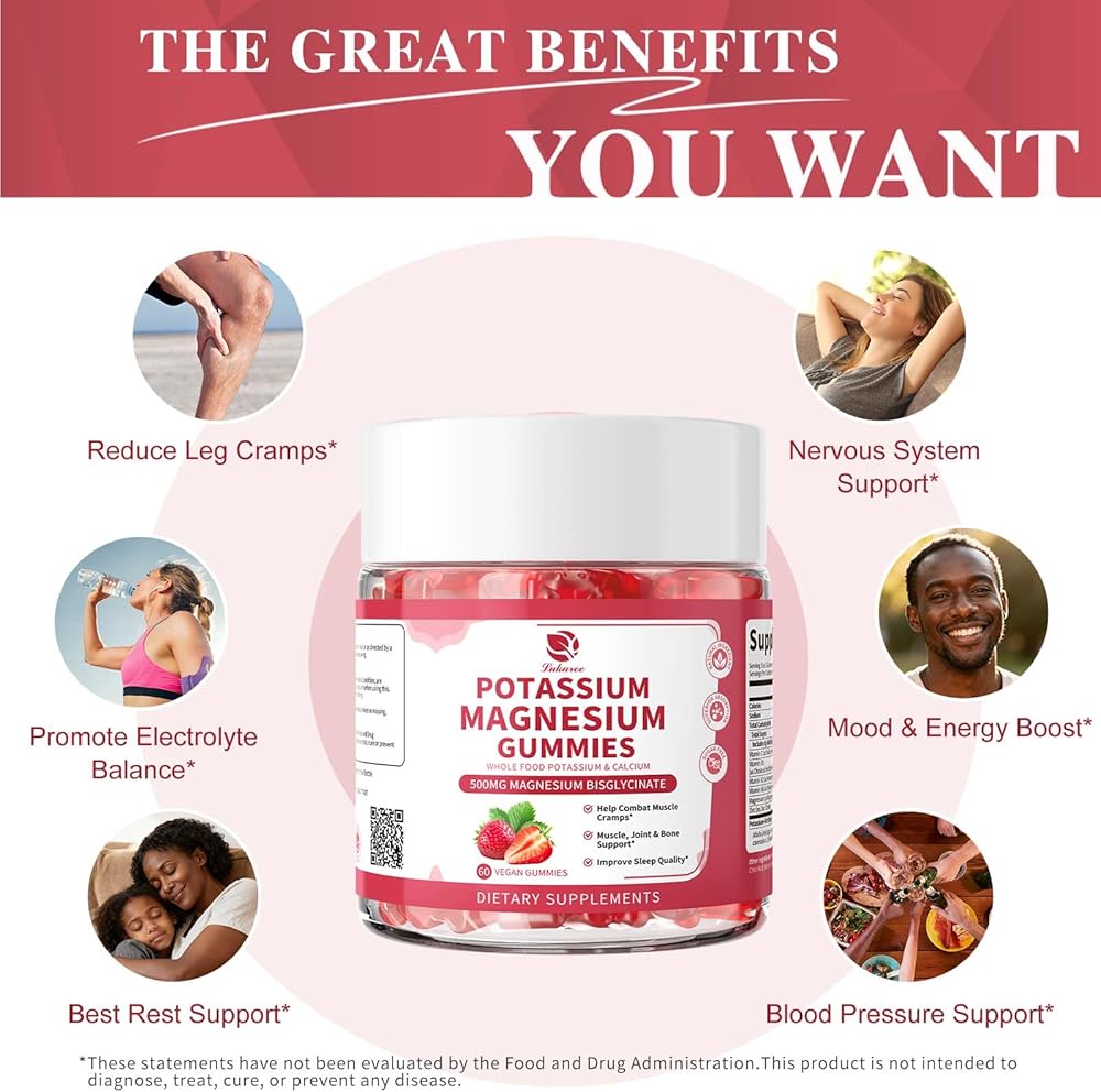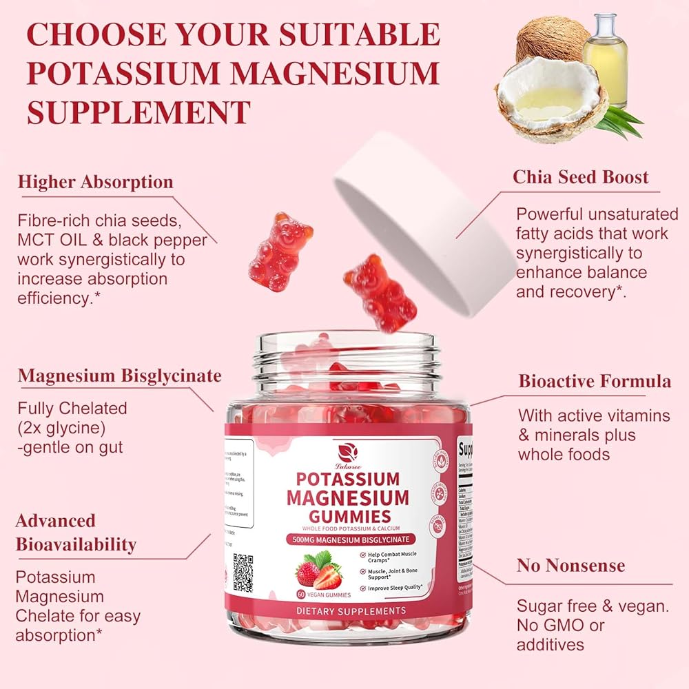 EASY TO TAKE & DELICIOUS: Swallowing capsules and tablets is a chore, our sugar-free strawberry flavoured potassium gummies offer an easy and delicious way to meet your daily needs, with no aftertaste, pleasant to chew, and easier to absorb, Gentle on the stomach, A great option for those looking for a potassium magnesium complex supplement that is gentle on the digestive system.*