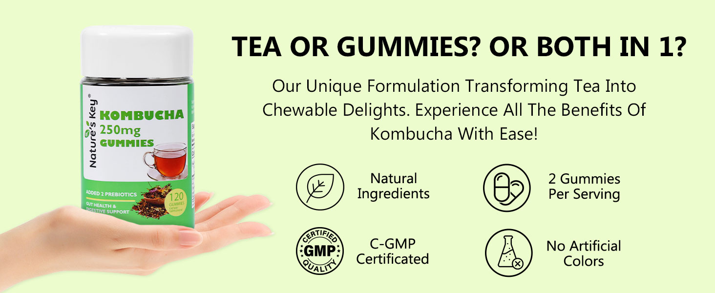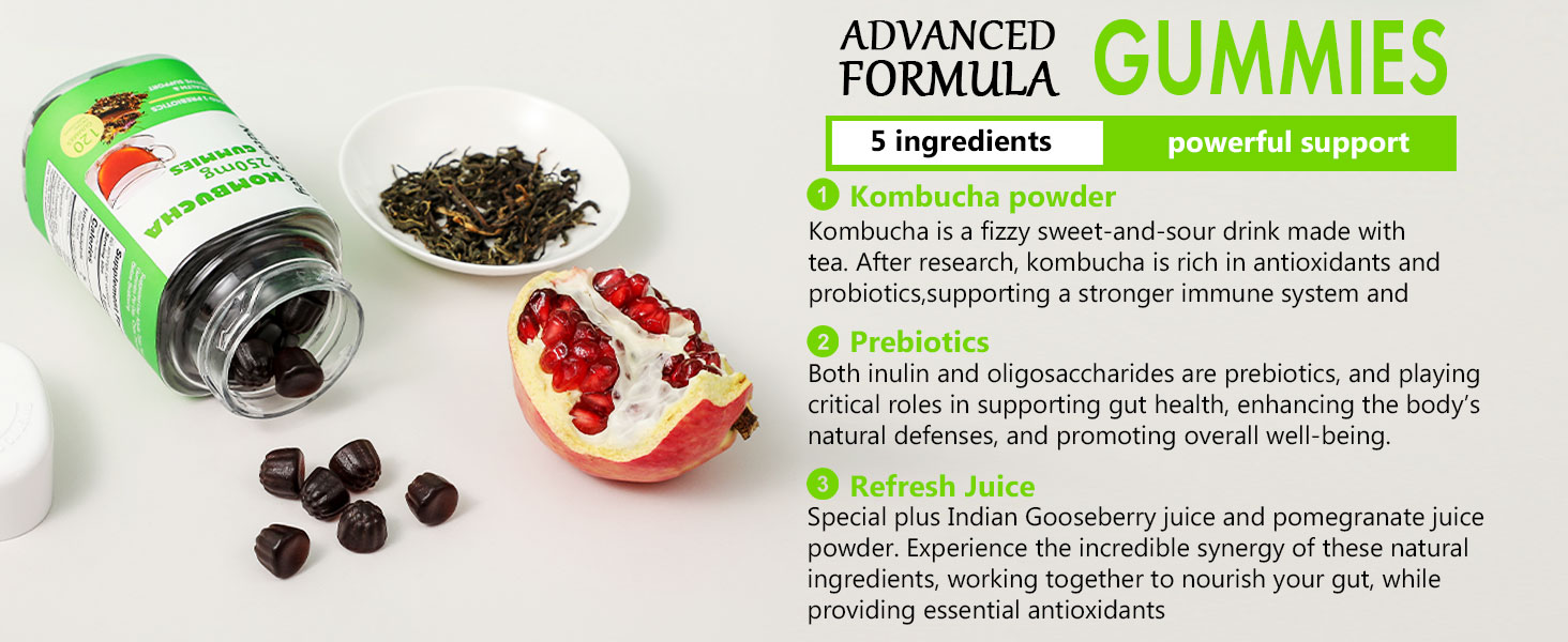 【Promote Gut Health】Kombucha is a type of tea beverage produced through the fermentation of sugar by a symbiotic culture of bacteria and yeast (SCOBY). It offers various benefits, including digestion support, boosting the immune system, and reducing stress. Now you can enjoy all these benefits in the form of delicious gummies.