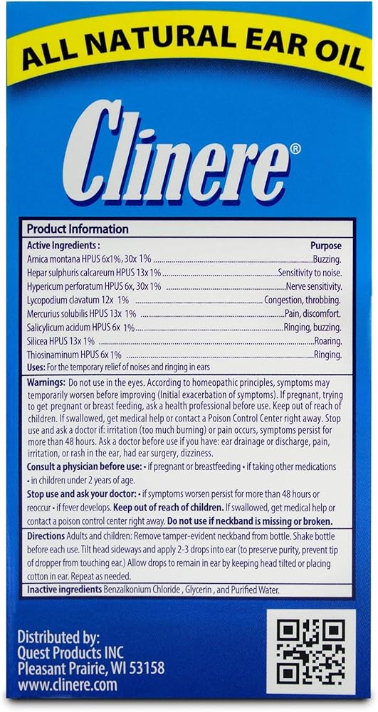 HOMEOPATHIC REMEDY - Clinere Ear Ringing Oil's homeopathic formula is scientifically engineered to address the afflictions of common ear aches, discomfort and Tinnitus related symptoms