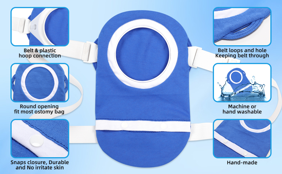 Prevent Falling Off - The adjustable stealth belt with white plastic hoop will attach securely to an ostomy pouch and hold the Ostomy Bag Covers firmly in place, throughing side belt loops and holes. Perfect for One or two piece drainable pouches