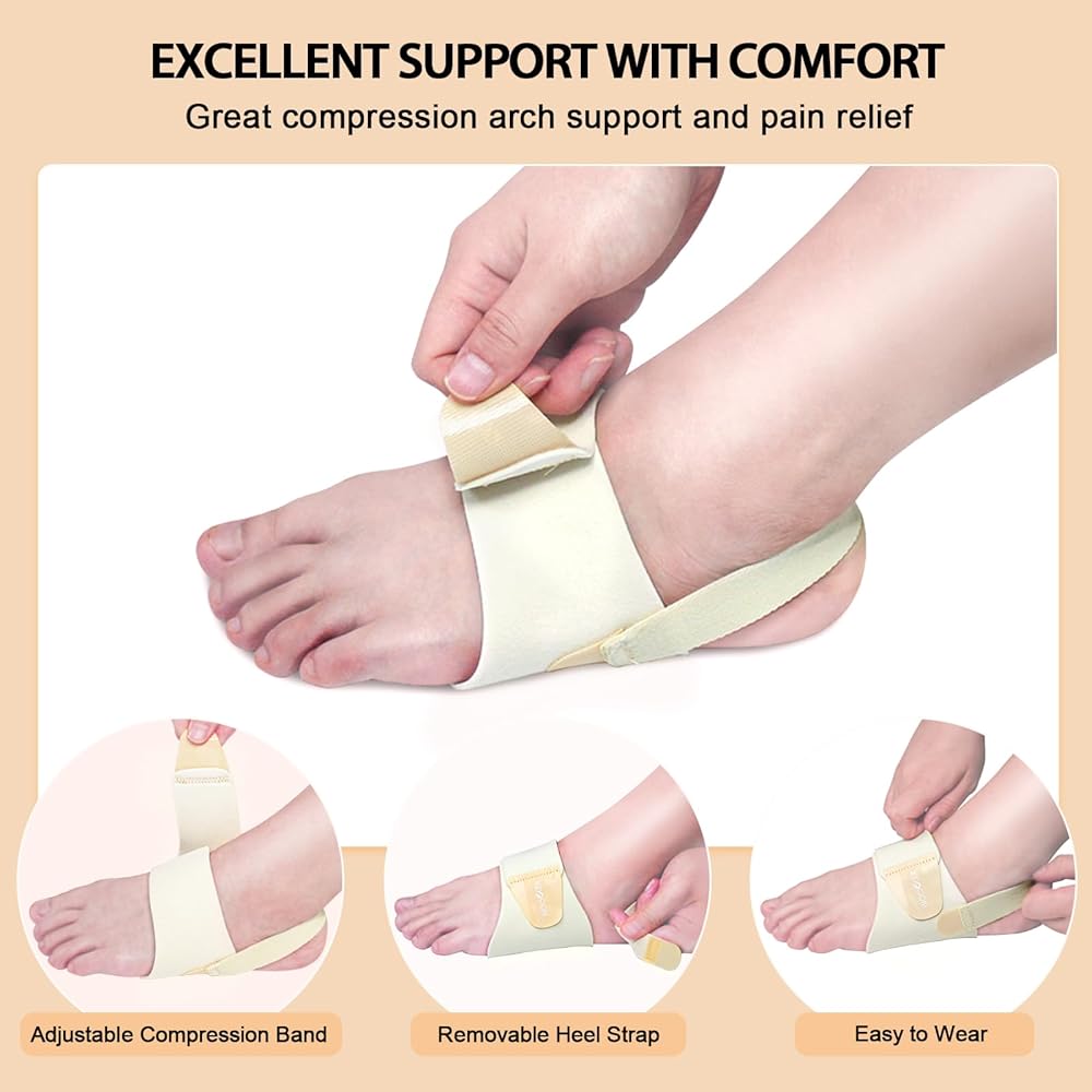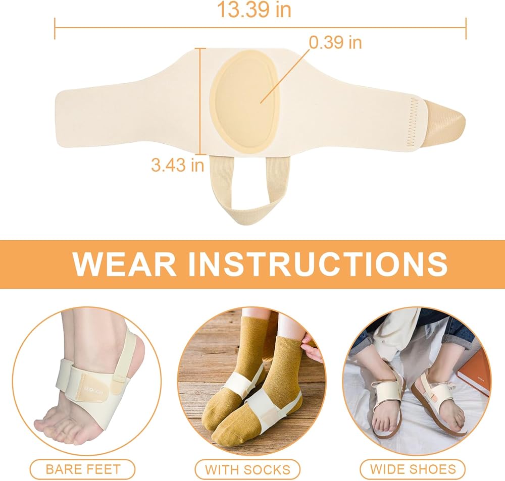 Kindly reminder: These arch support compression can be worn with bare feet, in socks, or shoes. Please only wear them 10-15 minutes a day at the beginning and build up wearing time, then gradually increase the time according to your own situation.