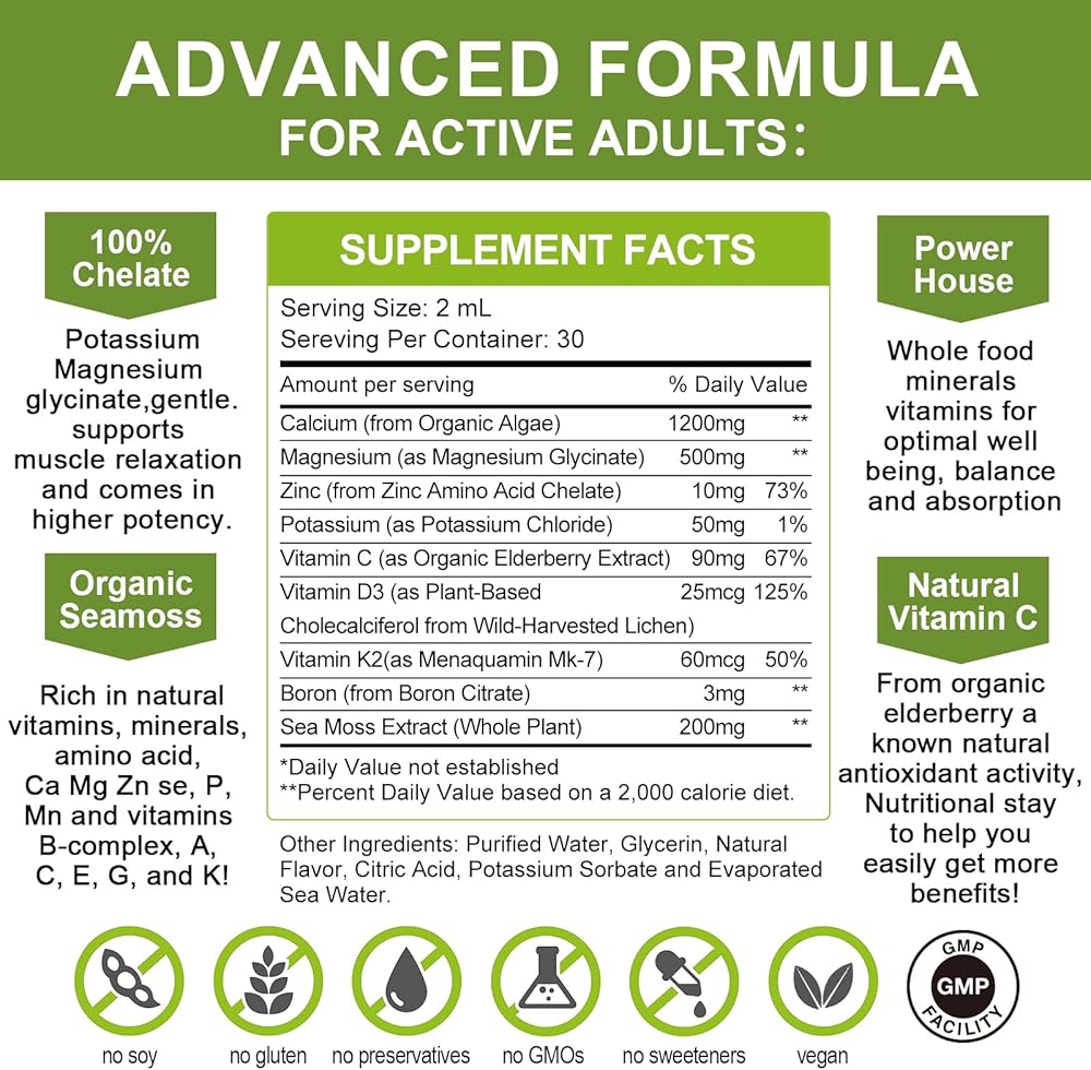 • ✔️ BEST ABSORB & BIOAVAIBLE: Made in expertly formulated and Whole Food nutrients, The combination of calcium magnesium zinc plus vitamins C,D3,K2 & Potassiumis crucial in aiding the body in Calcium absorption, keeping your bones, health and calcium absorption.For extra strength we added Organic Sea Moss (Rich in natural vitamin & minerals) to help get more benefits and Up Absorb & Bioavaible.