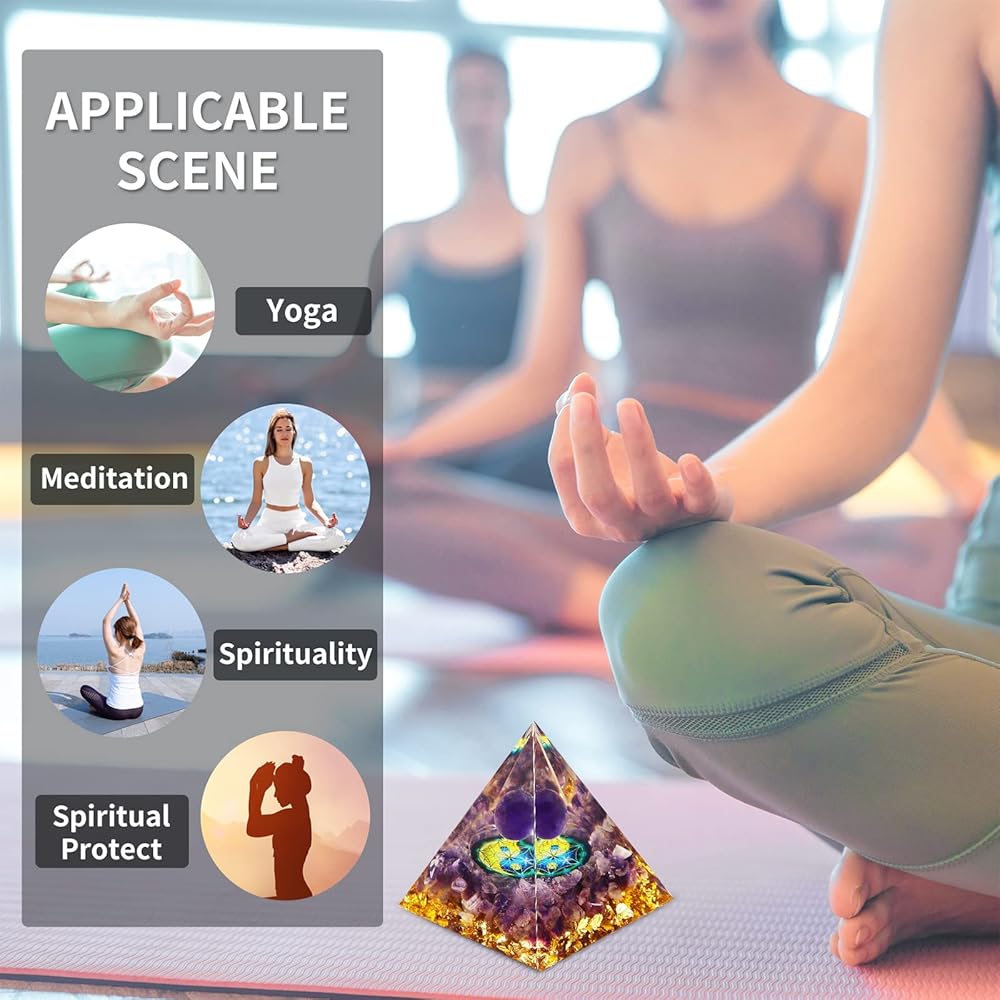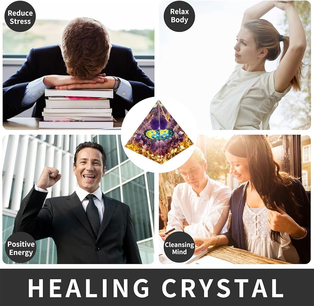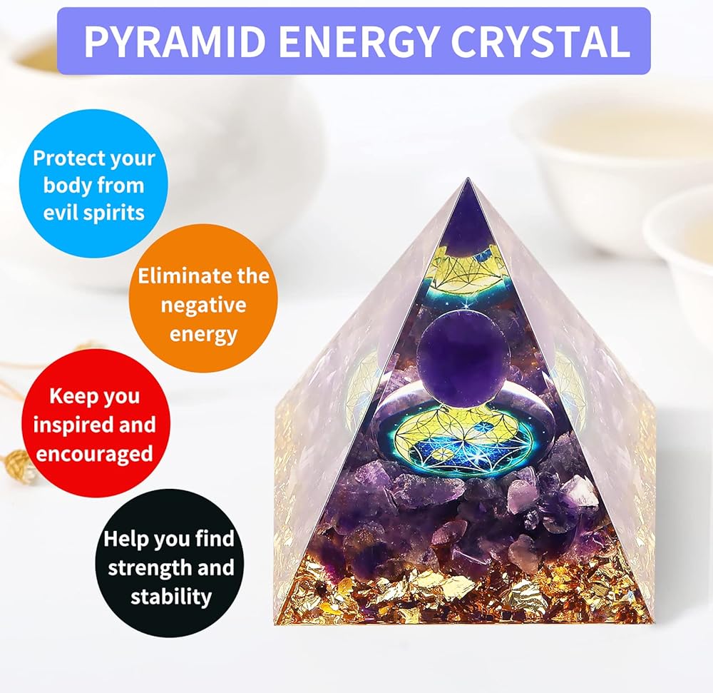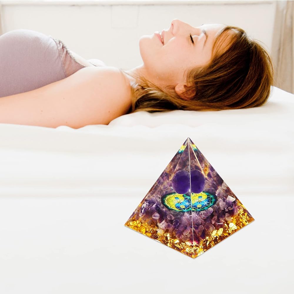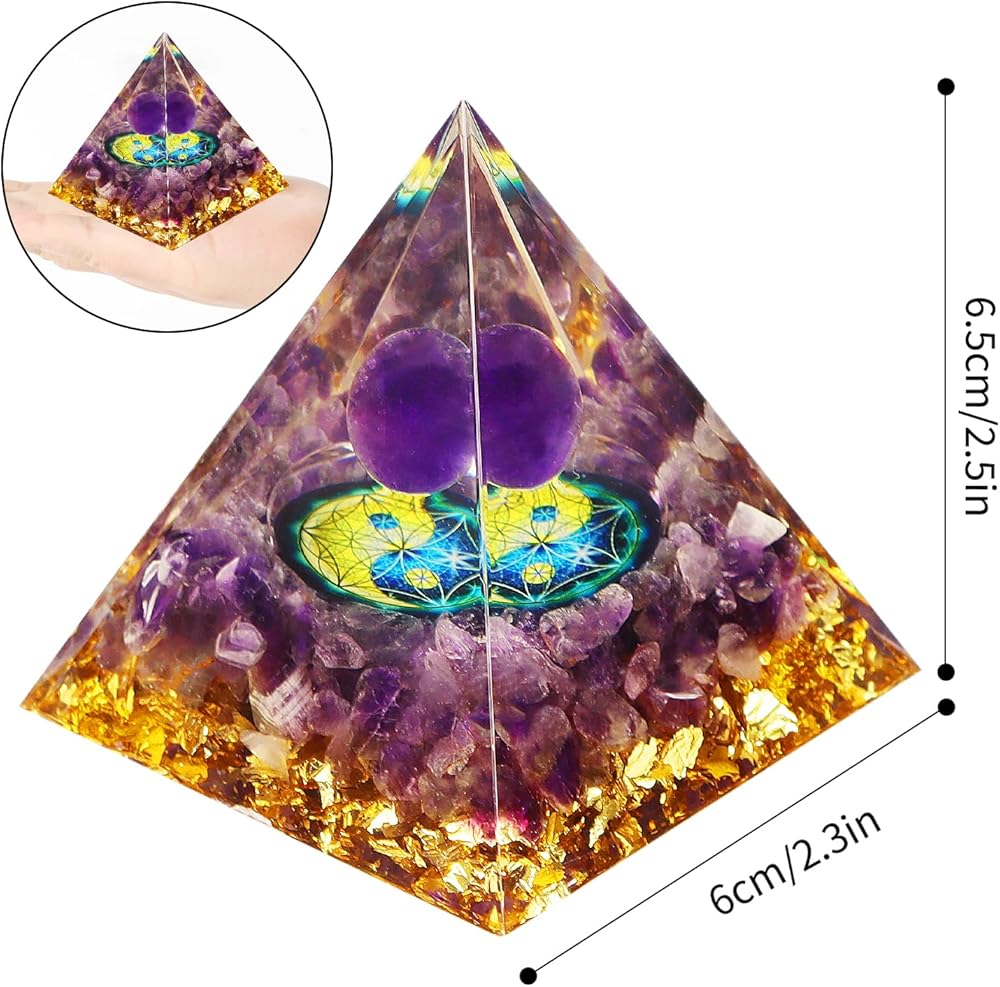 【Healing Crystal】The healing Pyramid is made of healing crystal chips, metal, resin. The amethyst of core gives you courage and strong, it has calming energy, nourishes the nervous system, relieves stress and soothes the mood, purifies the inner mind and relaxes the body.
