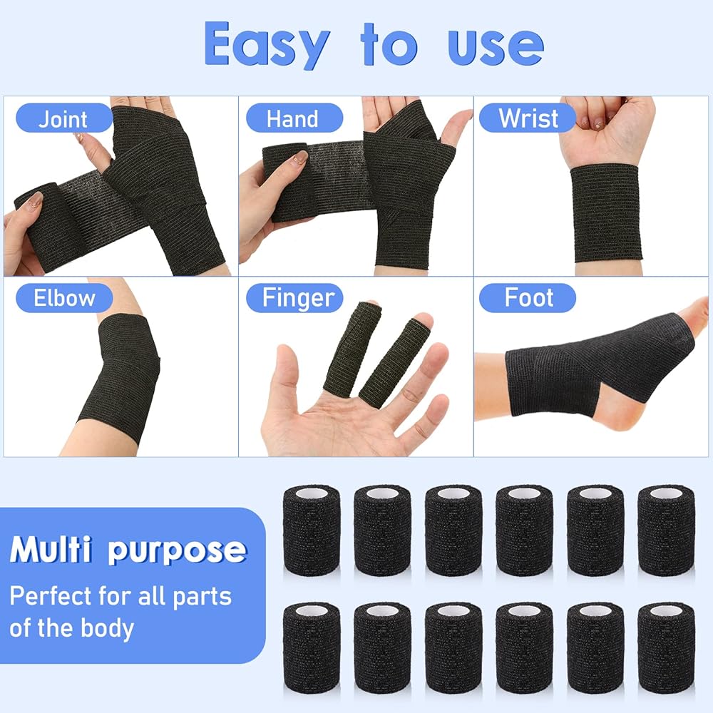 This adhesive bandage wrap is a strong self-adherent tape that offers excellent support. These bandages wrap will not slip, meaning you won't have to frequently readjust them. Good stretch elasticity provide adjustable support and compression that stabilizes the wrapped joint & promotes healing.