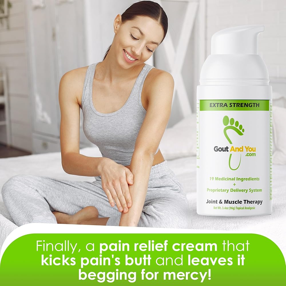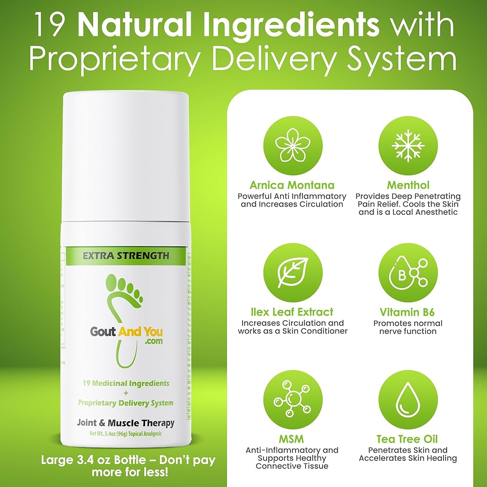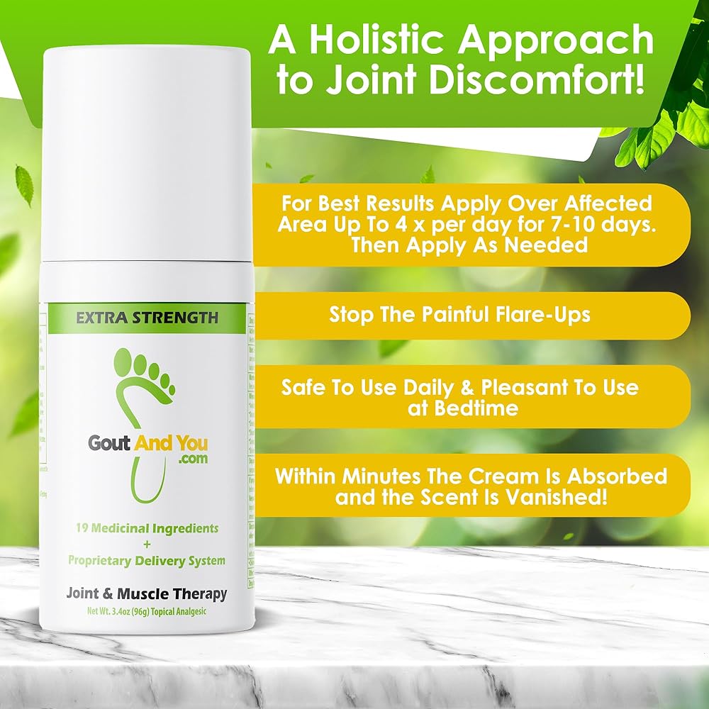 Gout and You Extra Strength Optimized Menthol Joint Discomfort Relief Cream for Joint Flare-Ups, Tendon, Muscle Ache - Fast Acting Joint Discomfort Relieving Rub with 19 Ingredients