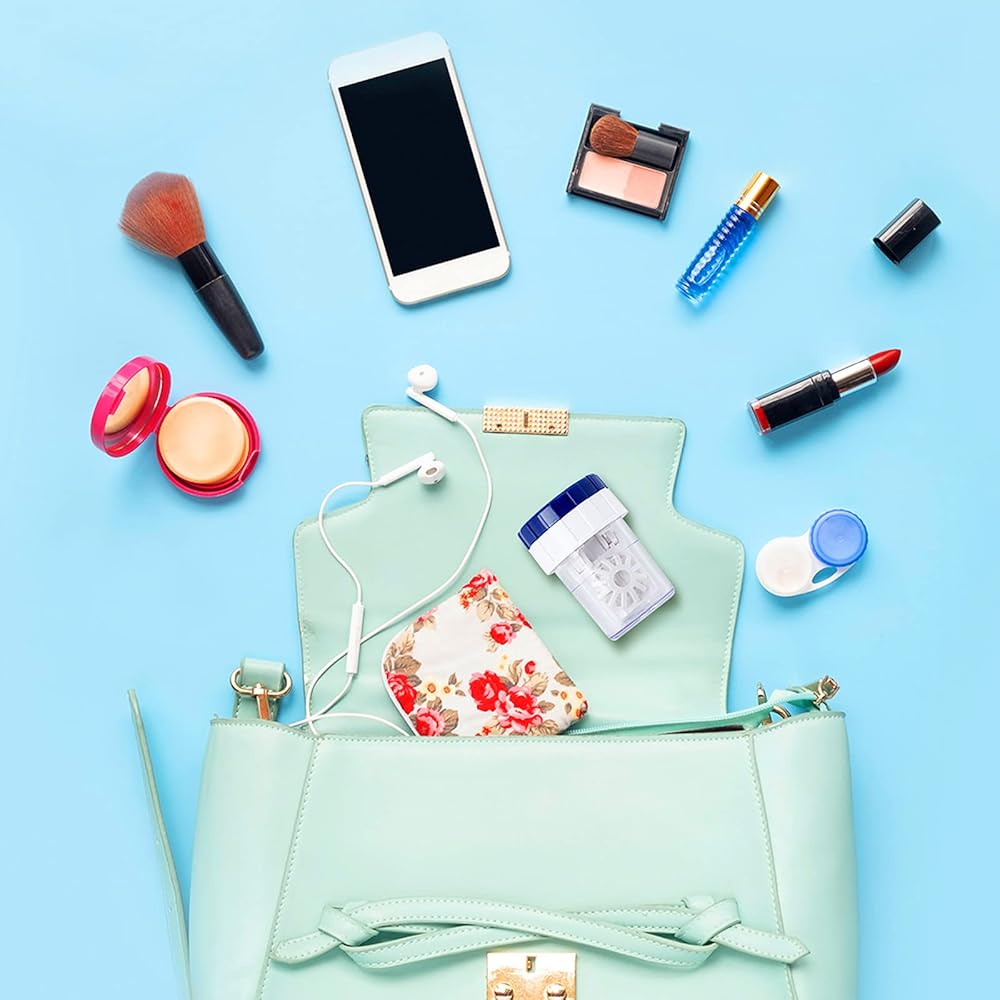 ★ Wash hands thoroughly firstly, and then place the lenses in the basket, pour some water only, then rotate the lid and clean your lens.