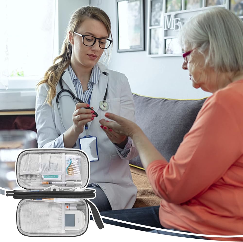 Compact Portable: Size: 7.8 X 4.1 X 2.2 inch, this diabetic supplies medical travel case will be a perfect helper while you are on travels or business trip. compact size and lightweight make it easy to carry and put into your backpack, handbags, computer bag, laptop bag luggage. easy to organize the diabetic care accessories and keep all in one place.