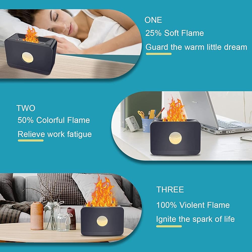 REALISTIC FLAME EFFECT: The flame diffuser integrate with a built-in smart LED light that collects light and mist to create a realistic flame effect, adding a relax,soothe,calm atmosphere to your home,office,spa or more.