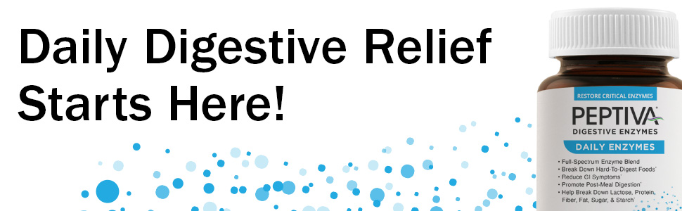 Peptiva's Digestive Enzymes Help break down lactose, protein, fiber, fat, sugar, and starch