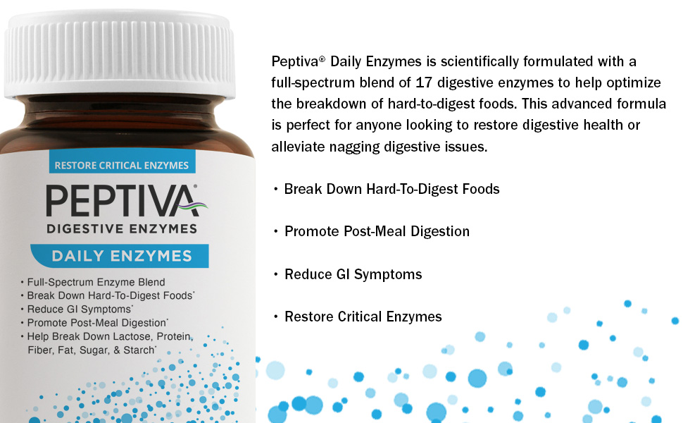 Peptiva Daily Enzymes delivers a full-spectrum blend of 17 digestive enzymes to help break down hard-to-digest foods. This advanced formula is perfect for anyone looking to restore digestive health or alleviate nagging digestive issues