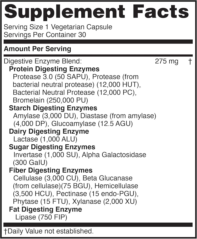 Take one capsule daily with your heaviest meal to reduce GI symptoms, promote post-meal digestion, and support optimal digestive function