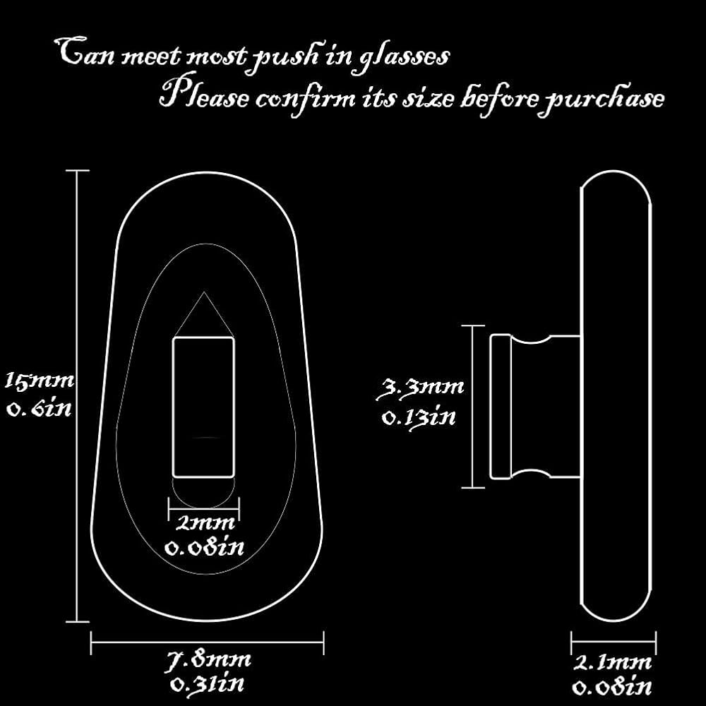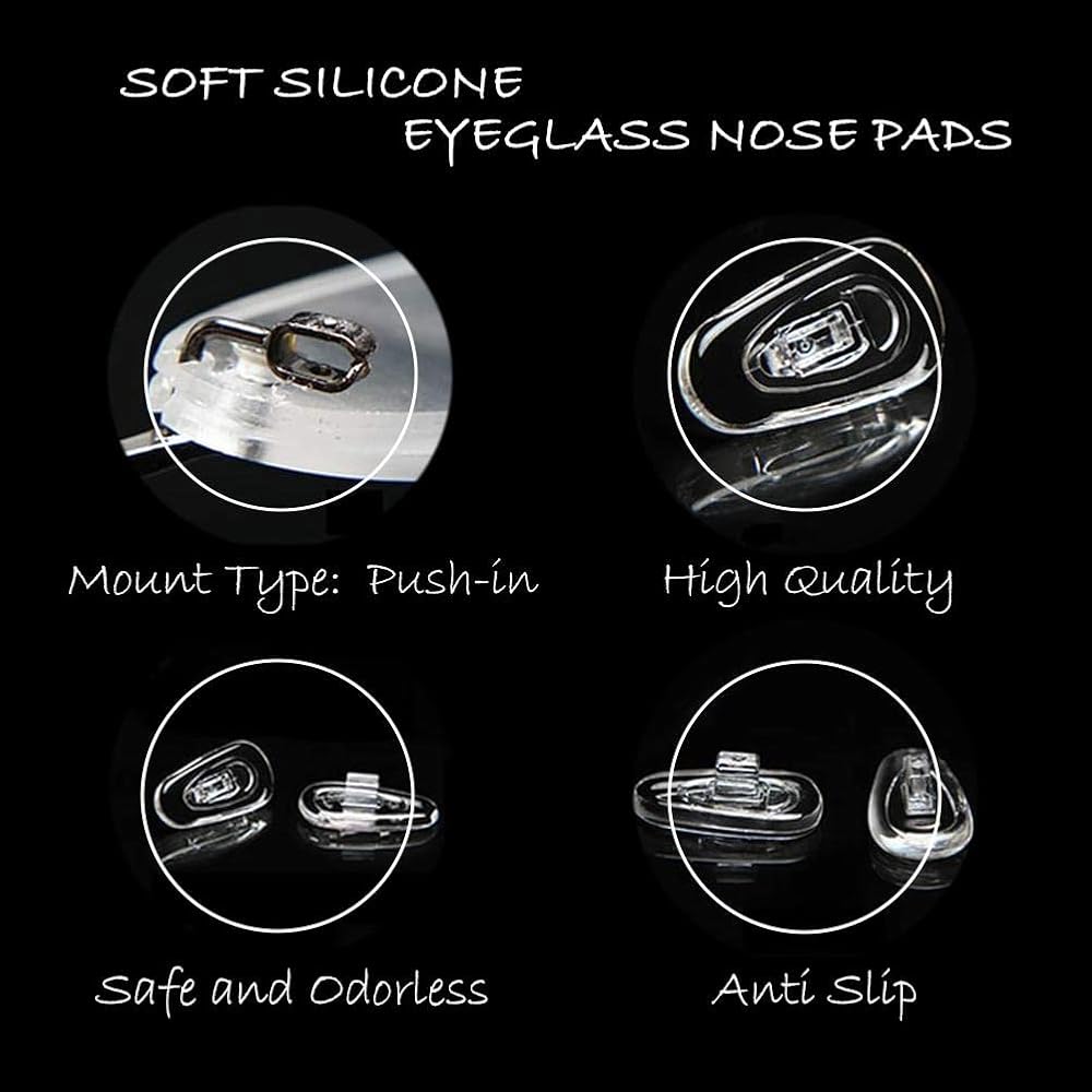 ✔ Easy to use: Push in,push on,No need screw,No need screwdriver.match well with various kinds of eyeglasses, sunglasses, spectacles that is push-in style nose pads frame,not the clip-on or screw-in style