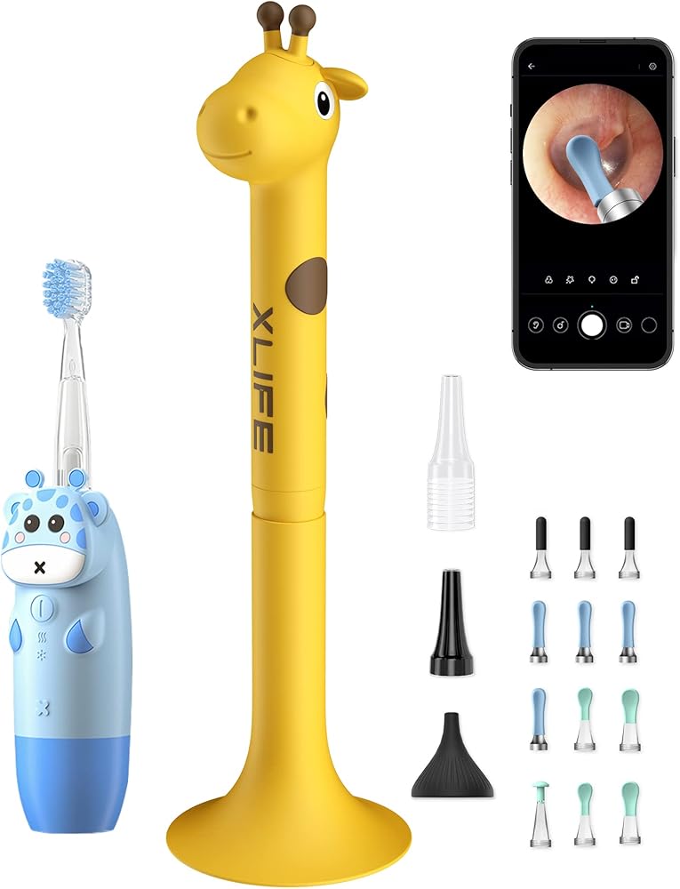 Xlife Ear Wax Removal Tool, Wireless Ear Otoscope with 6 LED Lights, Ear Cleaner with Blue Kids Electric Toothbrush, Earwax Remover for Kids, Ear Camera with 360-Degree Gyroscope for Smart Phones