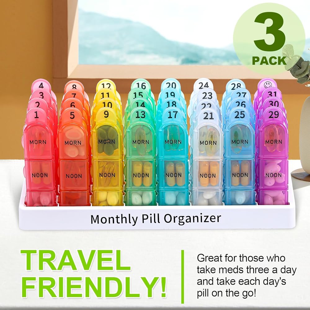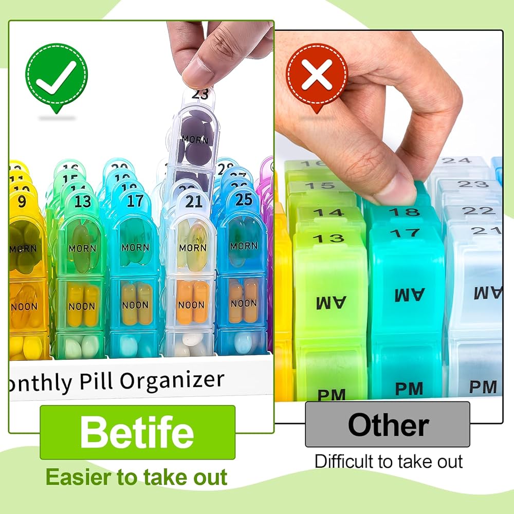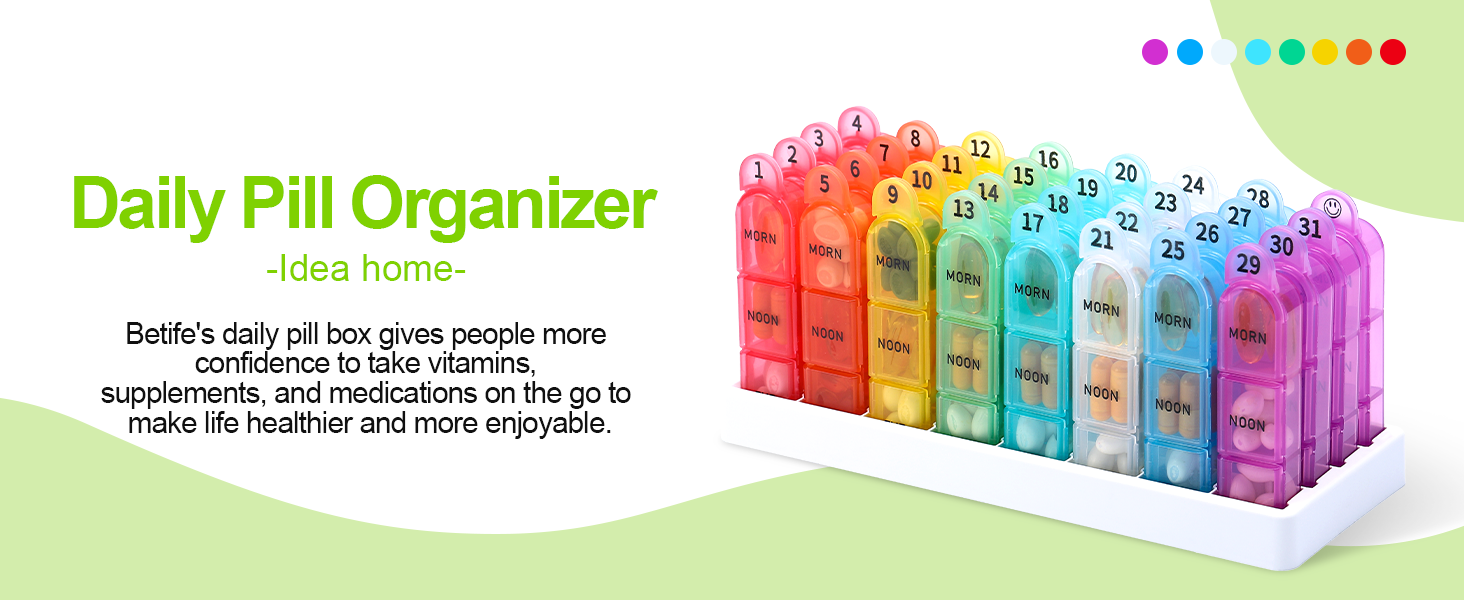 [Pill Organizer 3 Times a Day]. Betife monthly pill organizer can help organize 3 week's of pills, and each removable weekly pill organizer allows you to carry around. With a clear outer case, the pills inside the medication organizer are clear to see, so you can track your medication easier.