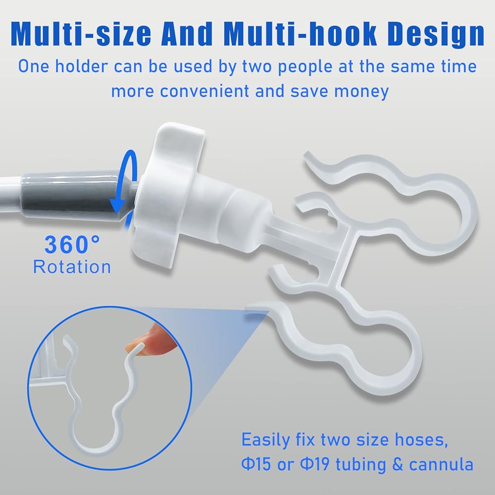 【Upgraded CPAP Holder】Can't your CPAP hose holder hold multiple tubes at the same time? Can't hold multi-size hoses? Do you and your partner find it troublesome to use two stands? Double clip design can clamp securely holds standard and slimline hose, cannula at the same time, one stand can be used by two people.