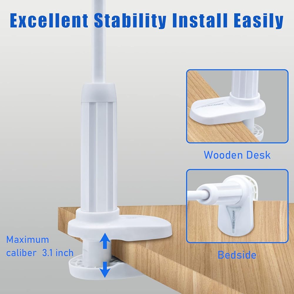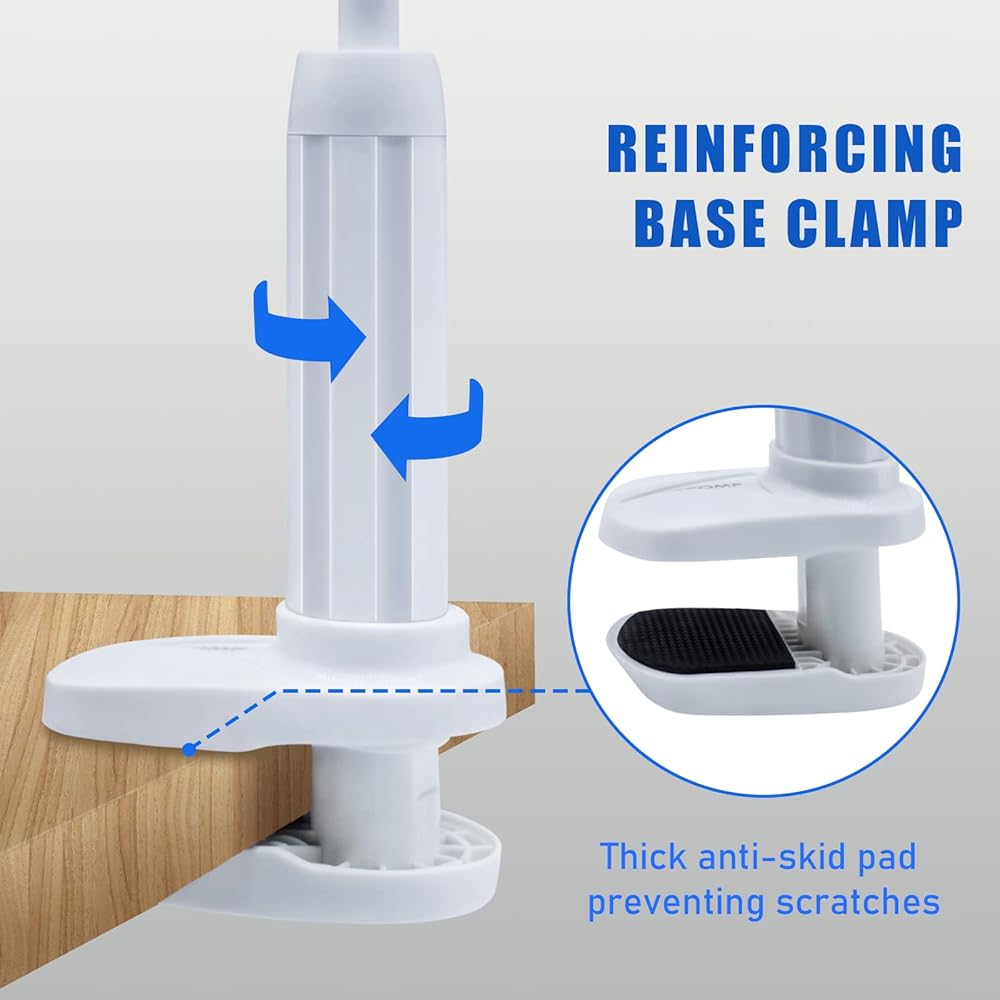 【EASY INSTALL】Easily install on a headboard, bed frame, nightstand, or side table with the versatile clamp. The table clamp is lined with a thick non-slip pad to prevent sliding and easily adjusts to fit headboards and tables up to 3.1 inches thick.