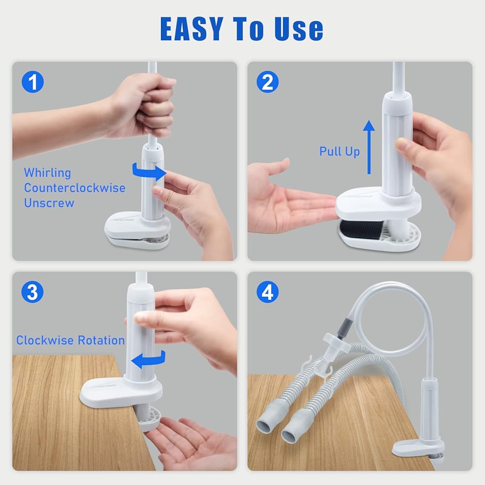 【Flexible Design】 CPAP tube holder is flexible, has 360° universal elbow and adjustable arm, allowing you to position the holder clamp in the best position for your sleeping style. Bendable arm measures 31 inches in length for optimal positioning.