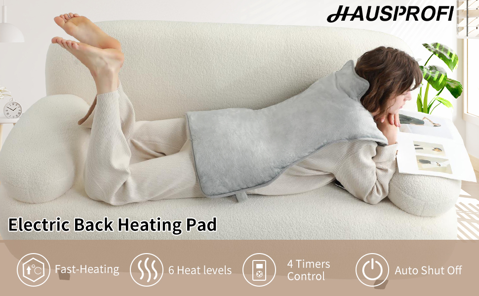 HAUSPROFI Heating Pad for Back Pain Relief, 37''x23 Electric Heat Pads for Neck and Shoulders Migraine Relief, Fast-Heating with 6 Heat Setting, Auto Shut Off, Machine Washable,Gifts for Women Men