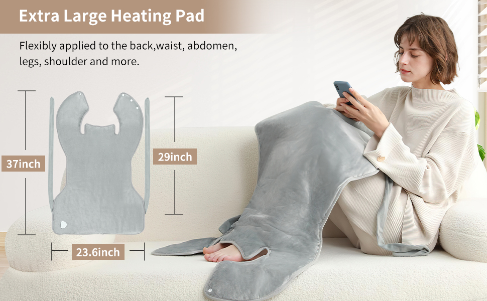 【All-round Heating for Pain Relief】The 24" x 37" extra large heating pads built-in micro-thin wires for more even heat distribution, offer a full Body heating pad and snug coverage around the neck, shoulders, and back with heat therapy to help relieve muscle pain and tension. It is also be flexibly applied to the waist, abdomen, legs, and more.
