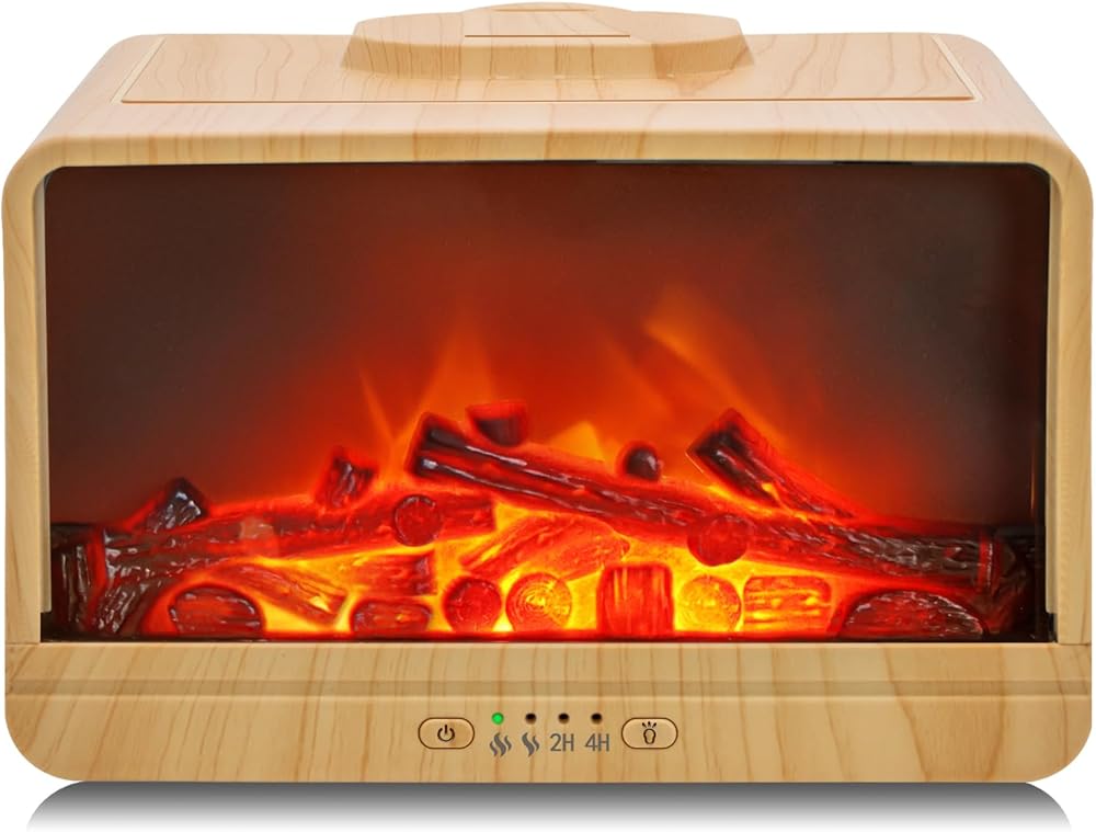 Essential Oil Diffuser, 300ml Flame Fireplace Aromatherapy Oil Diffuser for Large Room, Ultrasonic Cool Mist Humidifier with 2 Mist Modes, 2 Timer, 3 Light Modes, Auto Shut-Off for Home Office Gift
