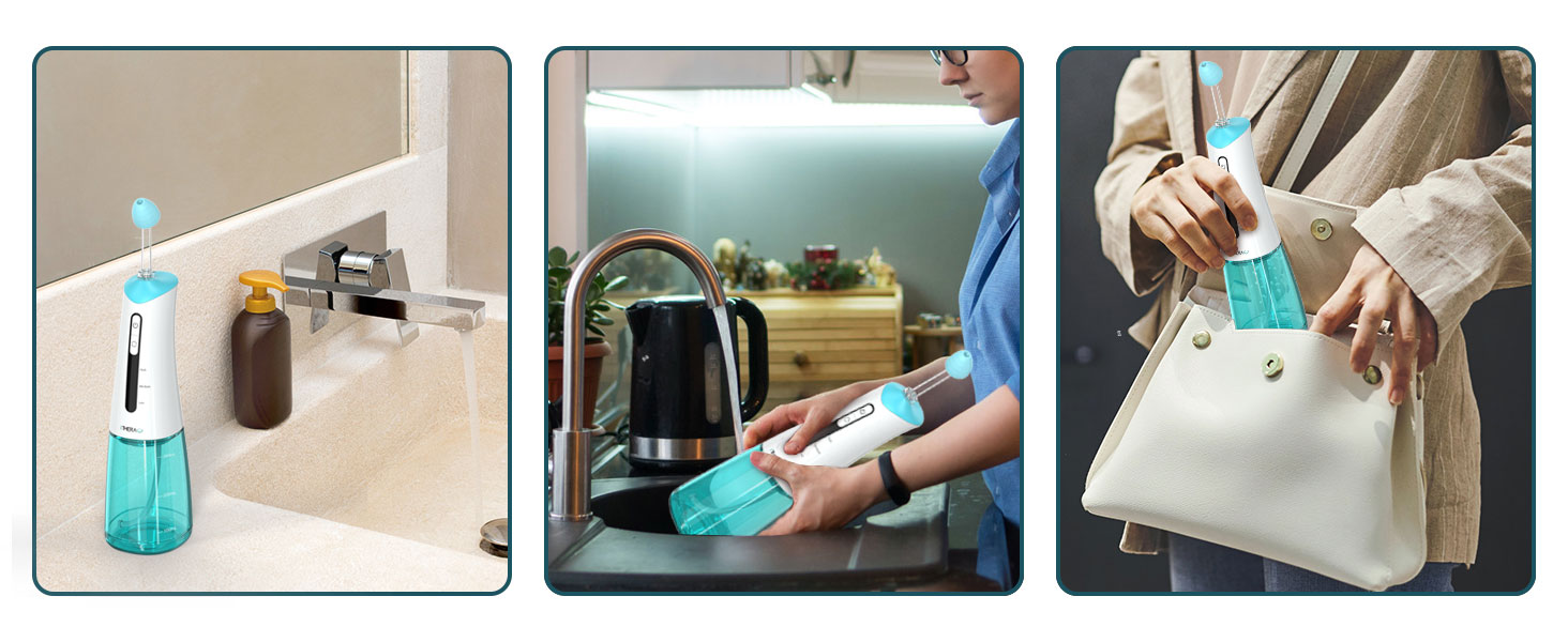 【IPX7 Waterproof and 10 Ounces Volume】This sinus cleaner has passed IPX7 waterproof grade so that the sinus rinse is safe to operate.The 10 ounces detachable water tank can meet your nasal cleaning needs and you needn't repeatedly add water duiring cleaning nasal,more convenient cleaning.