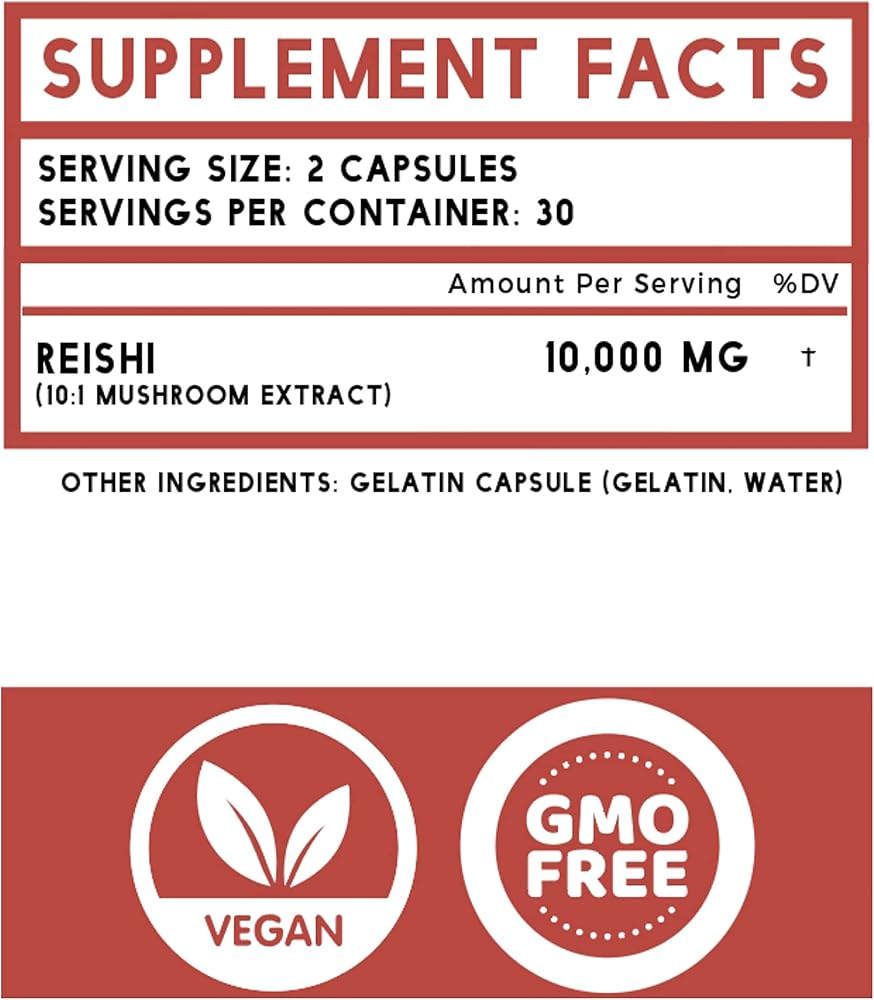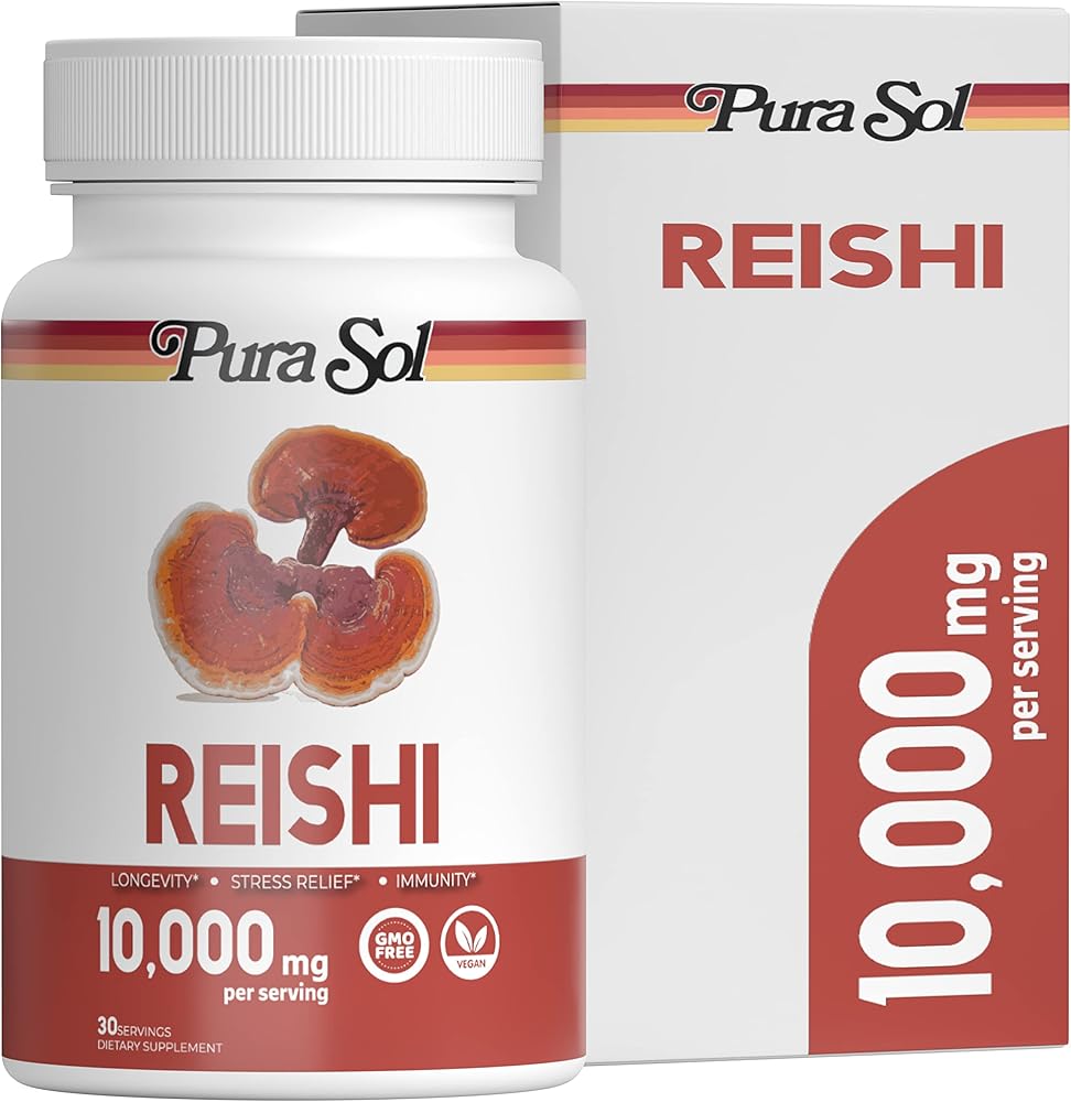 Maximum Strength Reishi Mushroom Extract for Longevity ; Immune Health Pura Sol Reishi Mushrooms are packed with 10,000 mg of Reishi extract per serving. Our supplements are made with actual mushrooms (fruiting body), giving you a potent and pure mushroom supplement with the highest level of bioavailable nutrients in every serving. 100% Mushroom Extract Powders Reishi is commonly used for longevity and immune boosting properties. Made with Non-GMO, Vegan ; Gluten mushroom powder, giving you the most potent and pure mushroom supplement on the market! With no fillers or preservatives, you can rest easy k ing you're getting 100% pure Reishi mushrooms in every bottle! Satisfaction ; USA Made We k you have a lot of options to choose from when it comes to Reishi Mushroom supplements. That is why we want to go above and beyond for you and offer our 100% Satisfaction . Which means we'll bend over backwards to make sure you have a great experience with our products, and with us. If you have any issue with the product at all, please contact us and we'll make everything right!