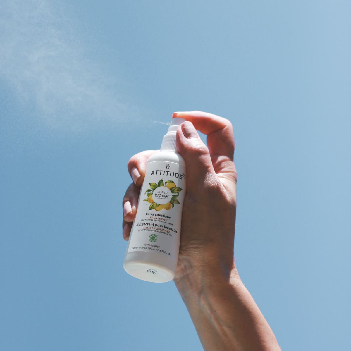ATTITUDE Hand Sanitizer Spray for Kids & Adults, EWG Verified, Travel Size, Dermatologically Tested, Plant and Mineral Based, Vegan, Vanilla and Pear, 3.5 Fl Oz (Spray Bottle)