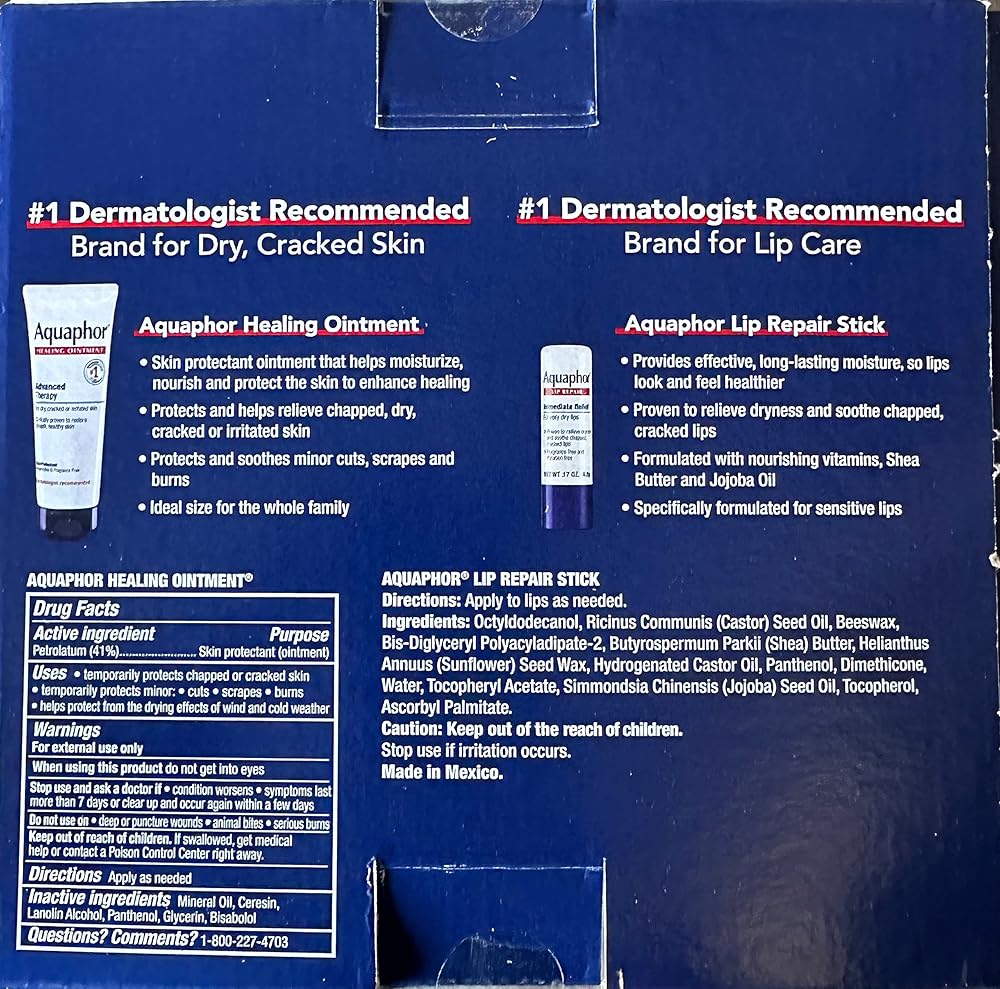 أحد الحلول الأساسية للعديد من احتياجات العناية بالبشرة: مرهم Aquaphor Healing Ointment مصمم بشكل فريد لاستعادة بشرة ناعمة وصحية. يختلف هذا المرهم متعدد الأغراض عن اللوشن أو الكريم، فهو خالي من الماء، وهو يحمي ويهدئ البشرة الجافة للغاية، والشفاه المتشققة، والأيدي والأقدام المتشققة، والجروح البسيطة والحروق، والعديد من تهيجات الجلد الأخرى، حتى تتمكن من الاستمرار. مع يومك بشكل مريح. ثبت أن عصا إصلاح الشفاه Aquaphor تعمل على تخفيف الجفاف وتهدئة الشفاه المتشققة والمتشققة