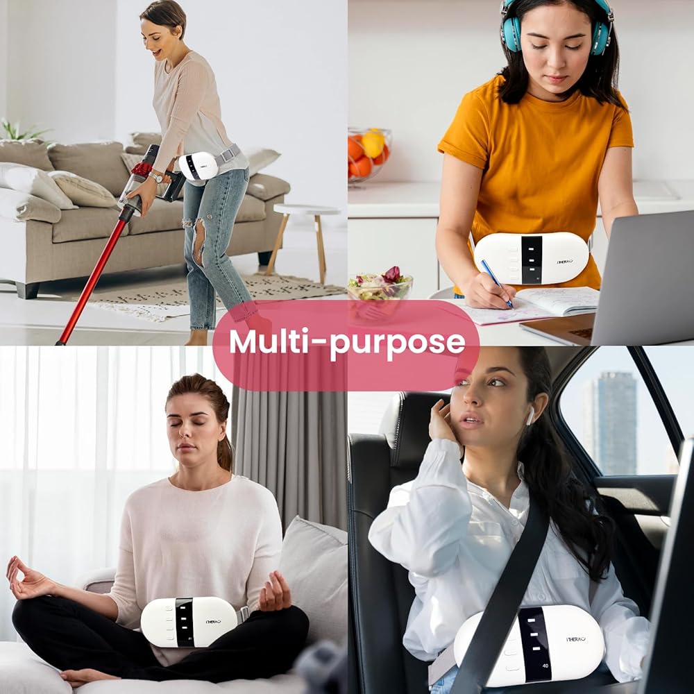 1.5-8Hour Long Battery Life & Wide Use: Built-in 2500 mAh rechargeable battery, heating pad for cramps can work continuously up to 8 hours! Lightweight and portable with Type C rechargeable design allows you freedom to be at your desk or bed without ever having to take off the device. Our high elastic waistband is adjustable, suitable for various waistlines. Heating pads for cramps is suitable for multiple body parts hot compress massage, especially great for waist, abdomen and more