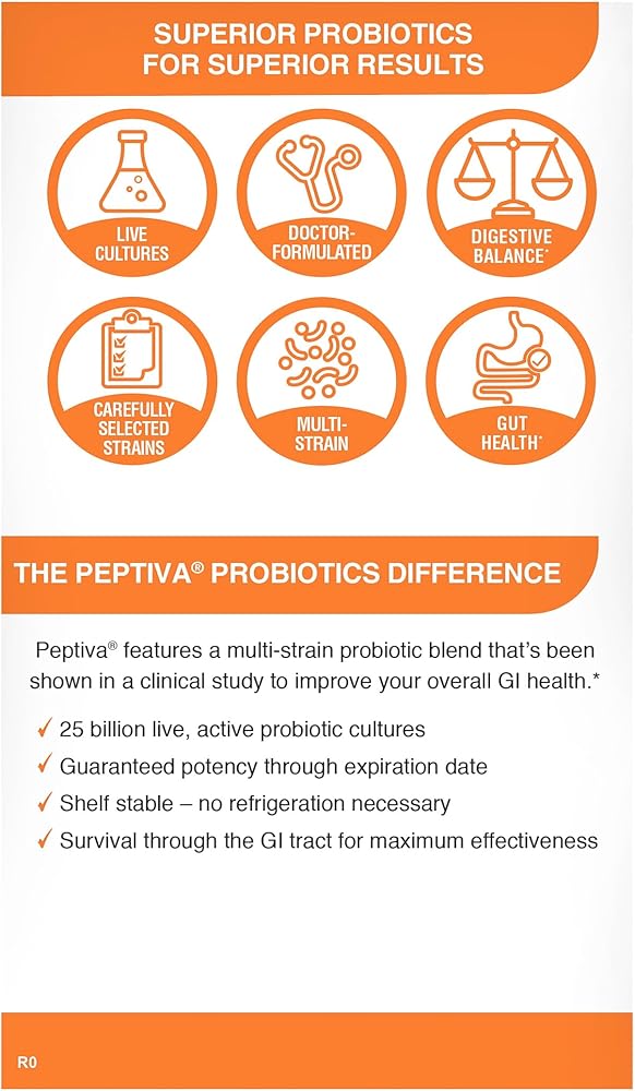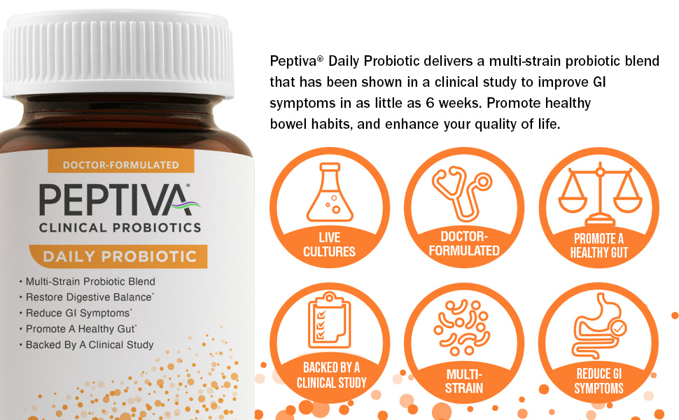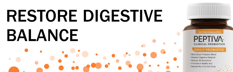 RESTORE DIGESTIVE BALANCE: Peptiva Daily Probiotic delivers a multi-strain probiotic blend that has been shown in a clinical study to improve total GI symptoms, promote healthy bowel habits and enhance your quality of life.